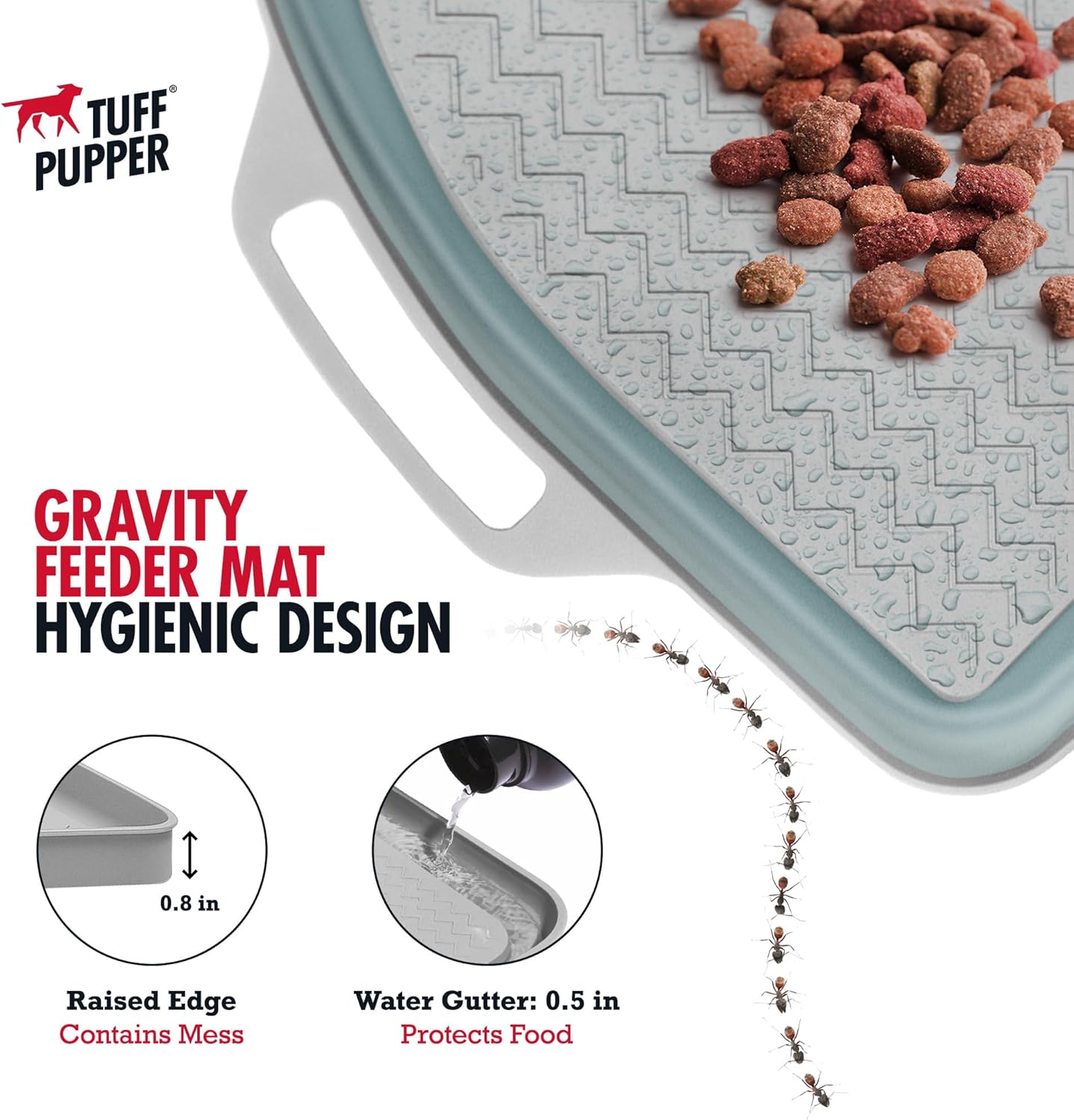 - WATER GUTTER PROTECTION - Pour a small amount of water directly into the gutter running along the inner edge of the mat to create a moat to protect your dog's food from getting eaten!