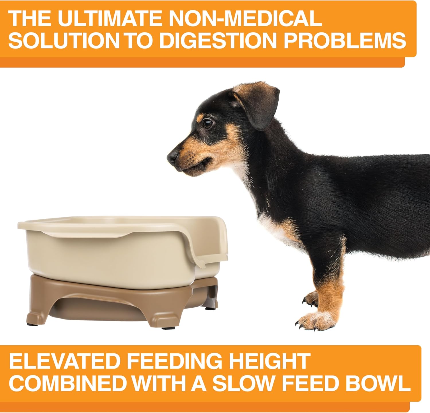 - DOG SLOW FEEDER BOWL INCLUDED: Comes with a stainless steel dog bowl slow feeder. Using elevated slow feeder dog bowls provides your pet with the best solution to digestion problems by providing a comfortable feeding position and slowing down eating, which will reduce overeating, choking, vomiting, and bloat.
