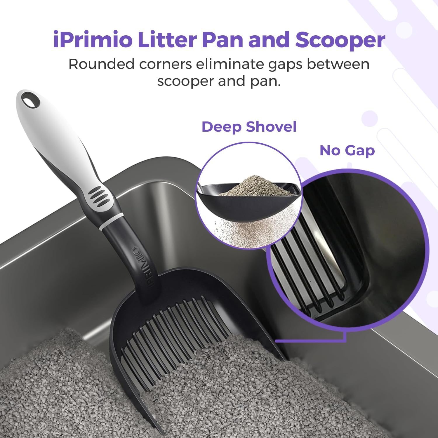 iPrimio - Stainless Steel Litter Box for Cats - Enclosed Sides and Easy to Clean - Includes High-Sided Litter Box, Scooper for Extra Litter Scatter Protection - XL Size for Big Cats - 23.5"x15.5"x6"