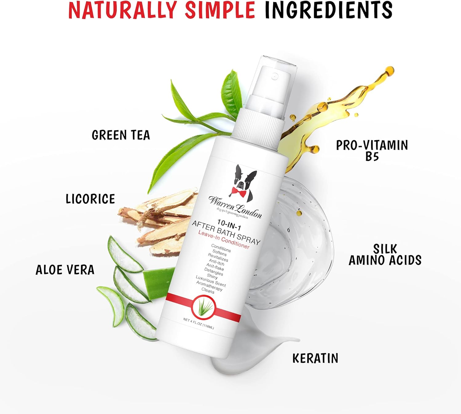 Warren London 10-in-1 Dog Spray & Rake Brush Combo | Detangles, Softens & Reduces Shedding | 16oz After Bath Spray + Dematting Rake | $40 Value – Now $29.99