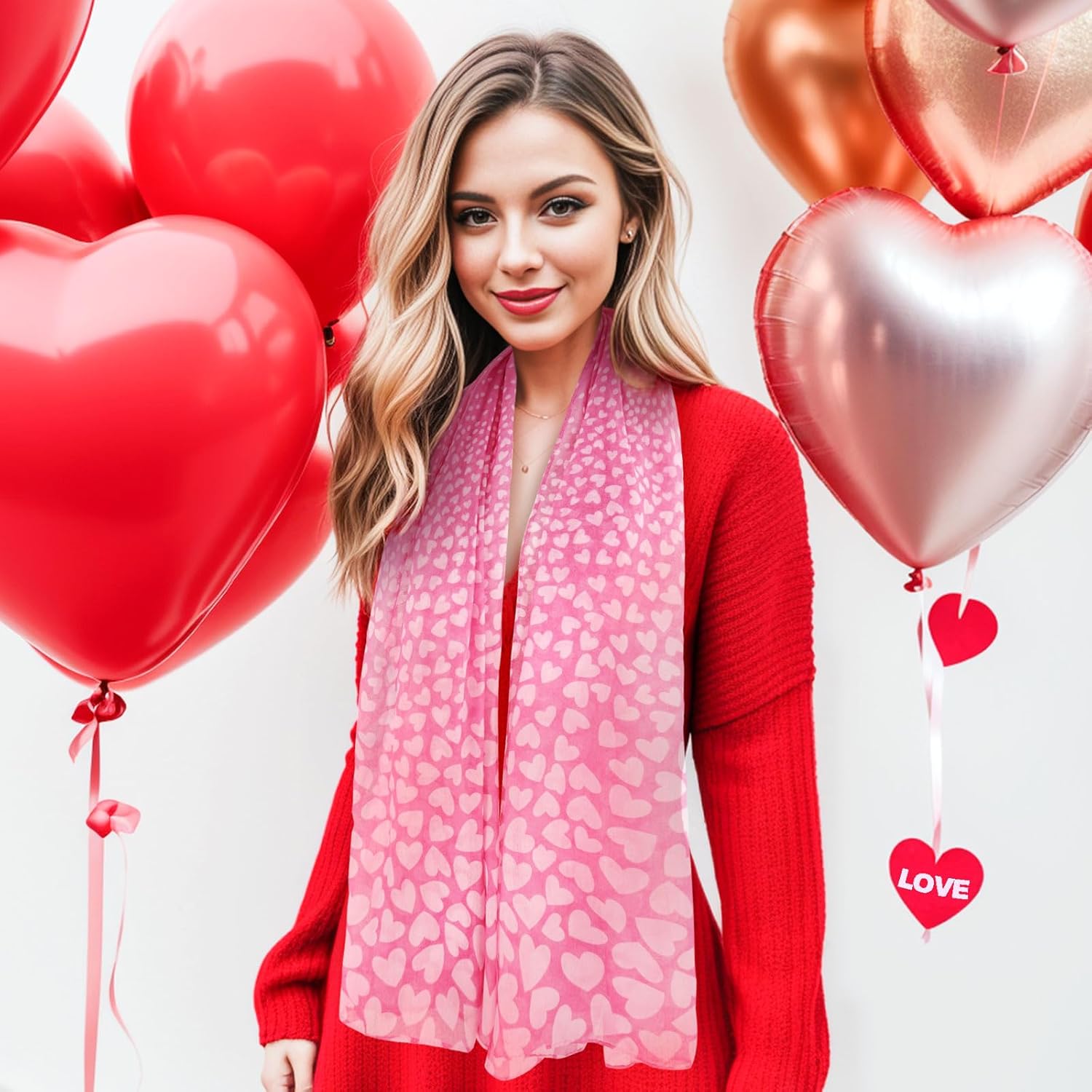 - Size: 180cm*90cm. The long & large pink heart scarf for women can be used as a head scarf, face scarf, neckercheif, belt scarf, headbands, shawls and so on.