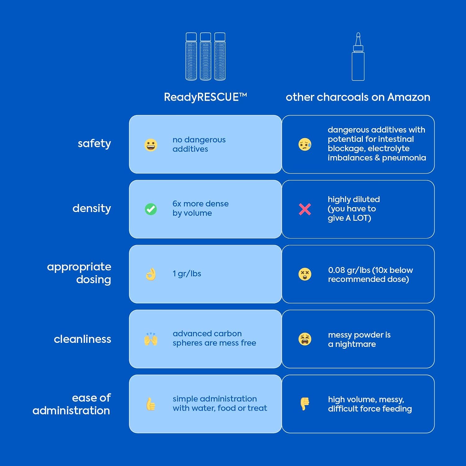 ReadyRESCUE - Dog First Aid Kit Essential - Activated Charcoal Detox for Dogs, Cats, Pets - Animal First Aid Kit - Dog Medical Emergency Kit - Dog Travel Essentials - 30g (3 Vials of 30g)