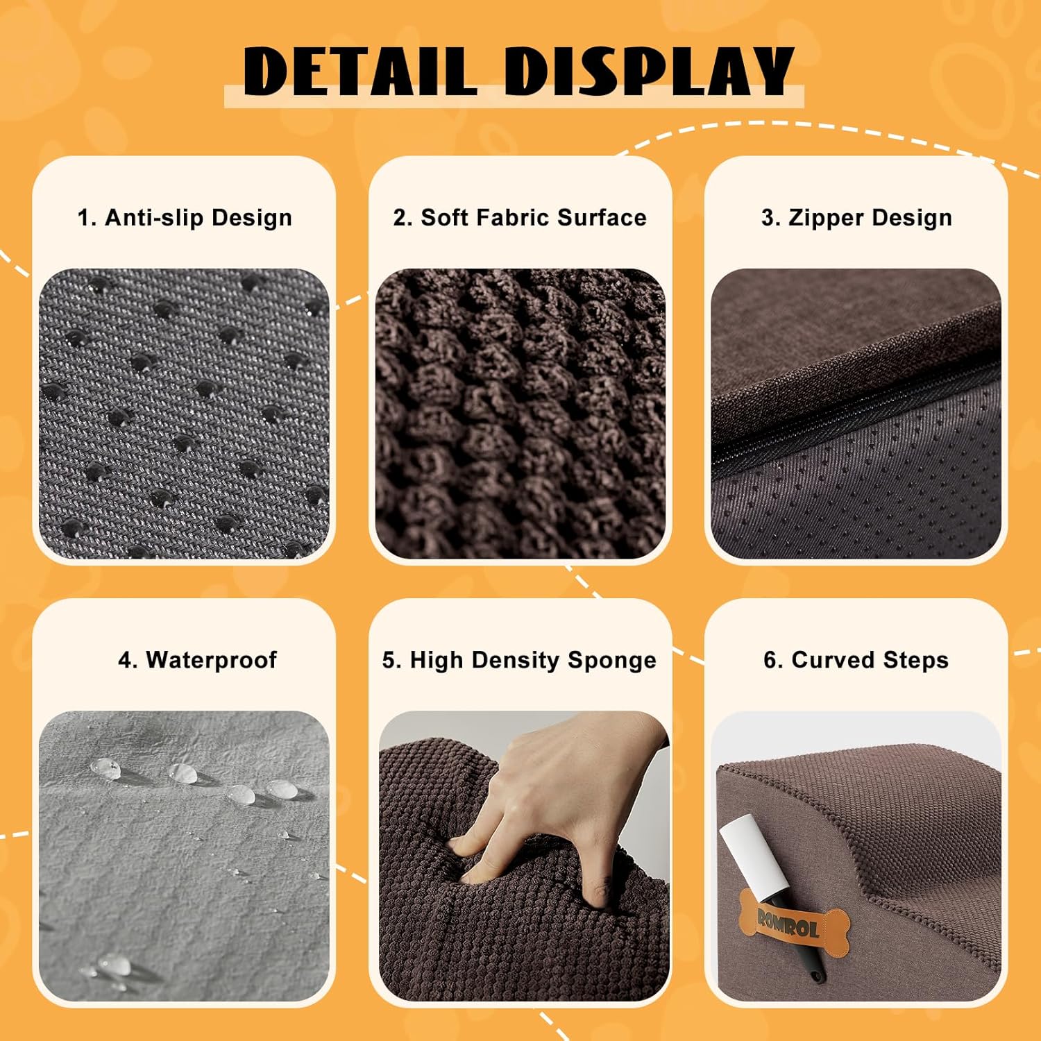 - PET HAIR REMOVER ROLLER: The package also includes a pet hair remover roller to help you easily remove hair from your pet steps and keep it clean at all times. Also can use it to remove pet hair from everyday clothes, sofas, blankets. It won 't destroy the fabric surface. Easy to tear off after use. The brand label on the side of the pet ramp is convenient for storing the Lint Roller, and you can also put your pet's favorite toys here