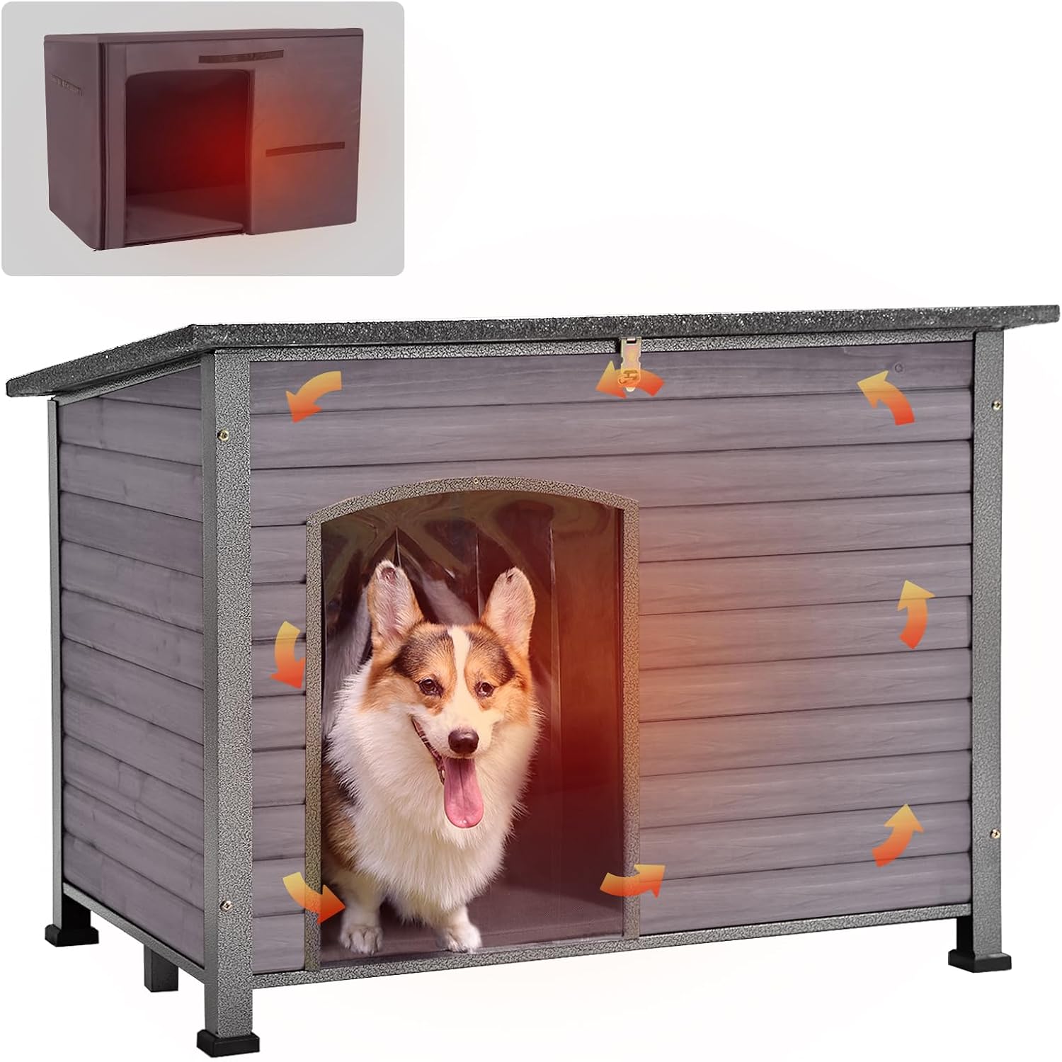 GUTINNEEN Dog House Insulated Outdoor Dog Kennel with Liner for Winter Large