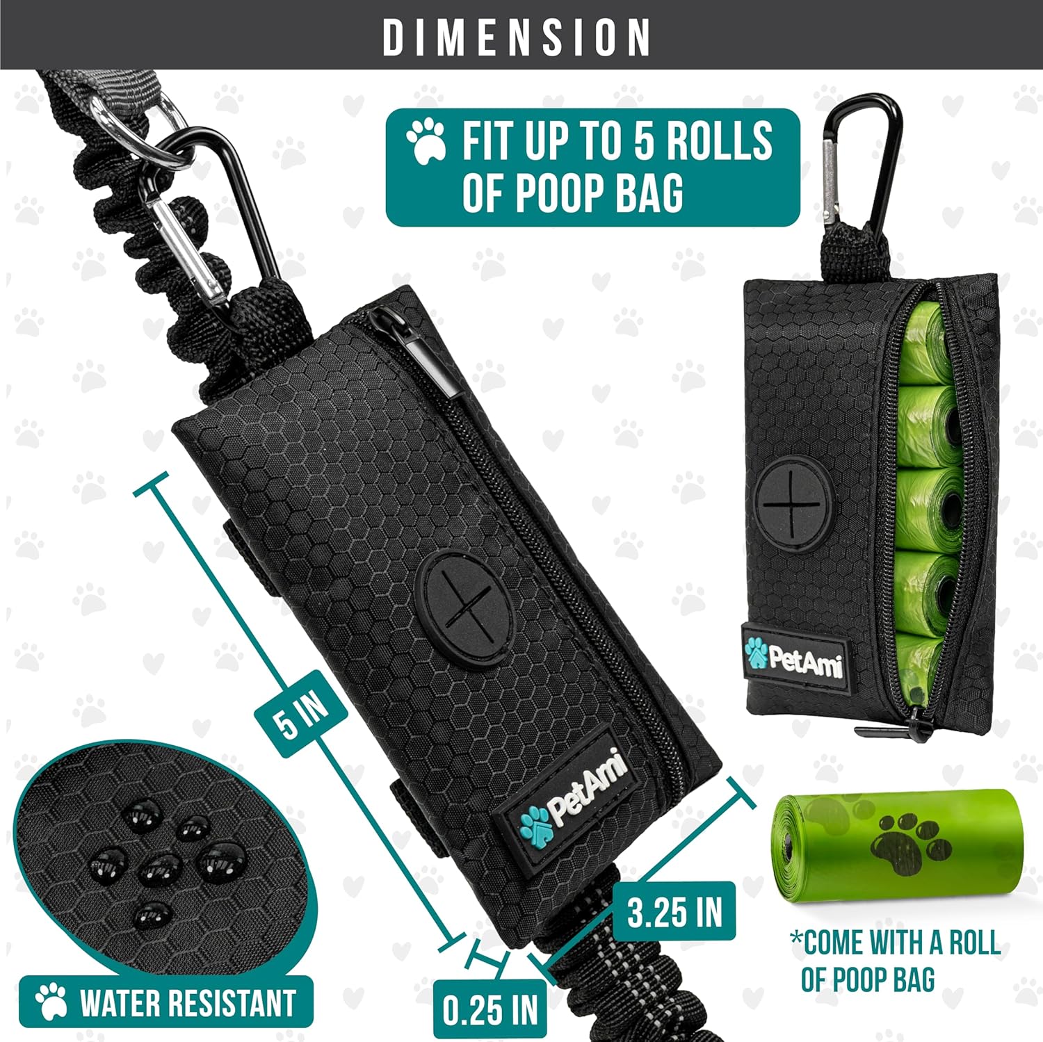 - 2 PACK DOG WALKING BAG: PetAmi poop bag holder dispenser includes one roll of dog poop bags, measures 5 x .25 x 3.25 inches, and is made of durable oxford polyester. Doggy trash bag carrier is refillable and is compatible with most dog poop bag rolls. This pet travel bag is a great gift for dog mom, dad, parents, owners, and trainers. Comes in multiple colors to mix and match your dog leashes.