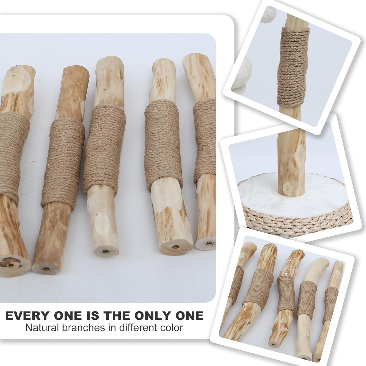 - 【Modern Wooden Hand Made Cat Tree】 Our real wood cat tree is made with the high quality real wood and distinctive elements like the tree trunk. With the cat scratching posts and hanging ball is fun enough for cats to climb and scratch without damaging your furniture.