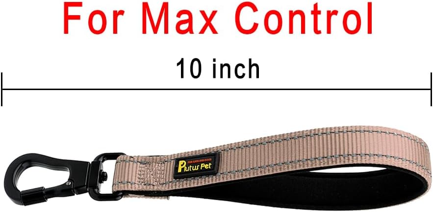PLUTUS PET Short Dog Leash, Reflective Nylon Padded Handle, Strong Traffic Leash with Carabiner Clip, Perfect for Large or Medium Dogs (10”,Beige)