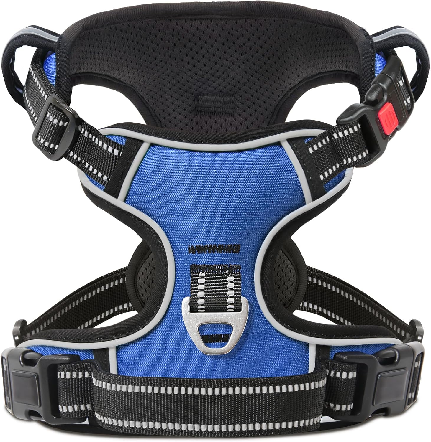 Timos Dog Harness for Large Dogs, No Pull Service Vest with Reflective Strips and Control Handle,No Choke Dog Harness with 2 Metal Rings for Easy Walking,Outdoor Training,Blue, L