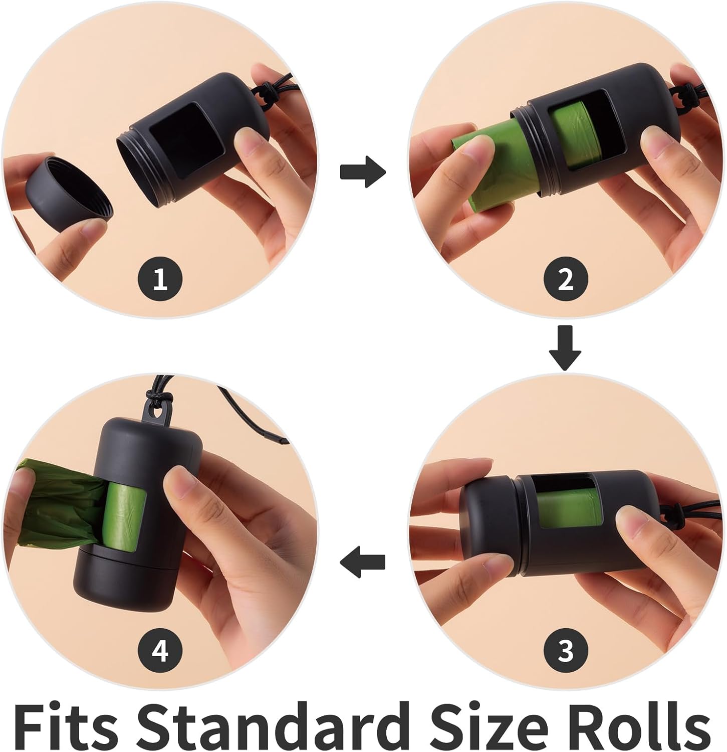 • Universal Fits: these pet waste bag holders fits all standard dog poop bag rolls,the large windows allows you to rotate the bag roll easily.Handy and portable to use.
