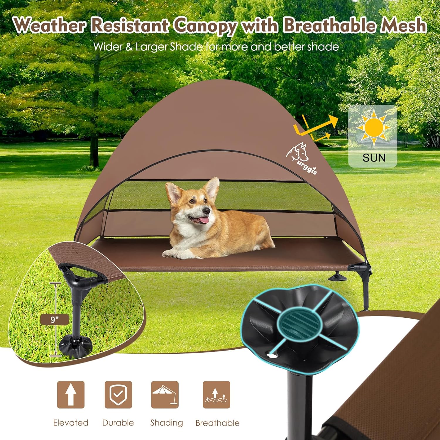 - Wider & Larger Shade Lifted Dog Bed: Comes with a large waterproof UV-proof canopy, this outside dog bed provides great shade than most other dog cots. Further more, with mesh piecing on 3 of the sides, this canopy will allow great air flow and will not block dogs' view. With this item, you will be rest assured when pets relaxing outside in summer;