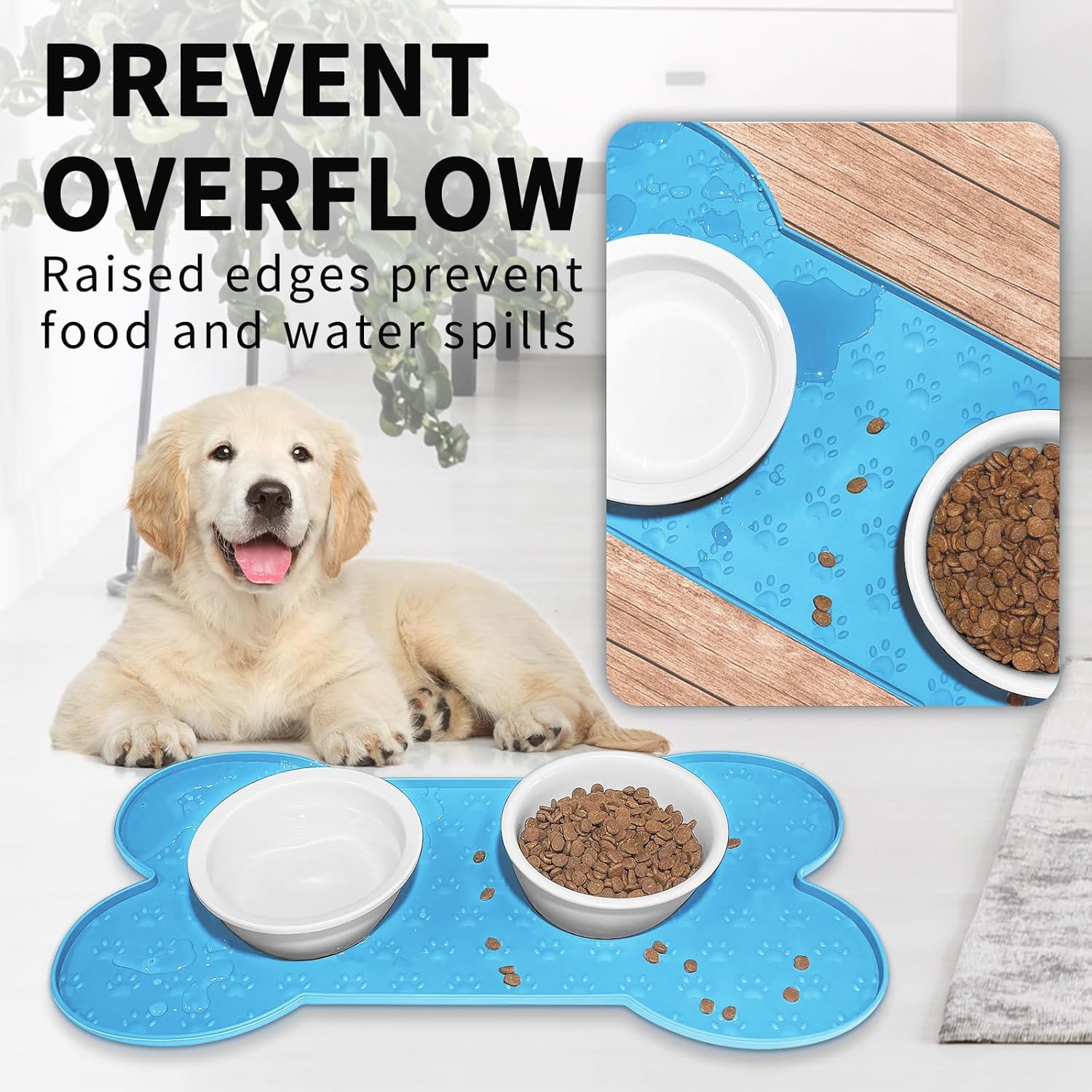 Dog Food Mat Anti-Slip Silicone Dog Bowl Mat Thicker Pet Placemat Waterproof Cat Feeder Pad with Raised Edge Puppy Kitten Feeding Mats Suitable Small Medium-Sized Dogs Cats Eating Tray