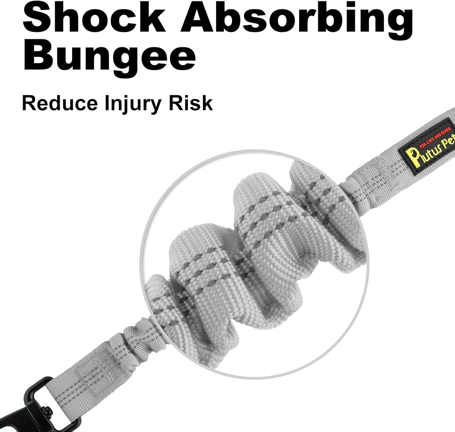 Plutus Pet Dog Seat Belt for Car, Adjustable Dog Car Harness with Carabiner Clip, Reflective Safety Dog Seatbelt Leash with Elastic Bungee, Gray