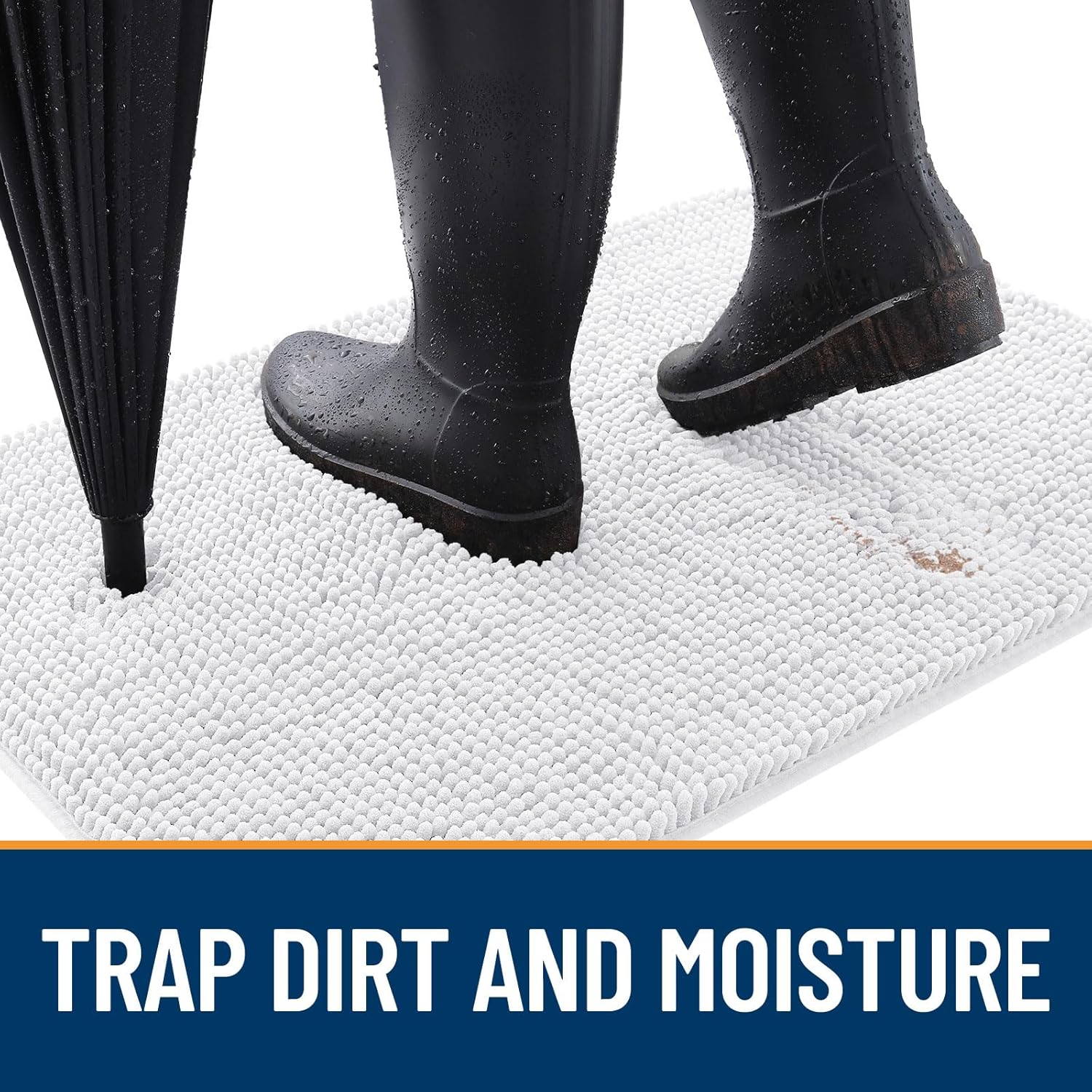 OLANLY Dog Door Mat for Muddy Paws 48x30, Absorbs Moisture and Dirt, Absorbent Non-Slip Washable Doormat, Quick Dry Chenille Mud Mat for Dogs, Entry Indoor Entryway Carpet for Inside Floor, White