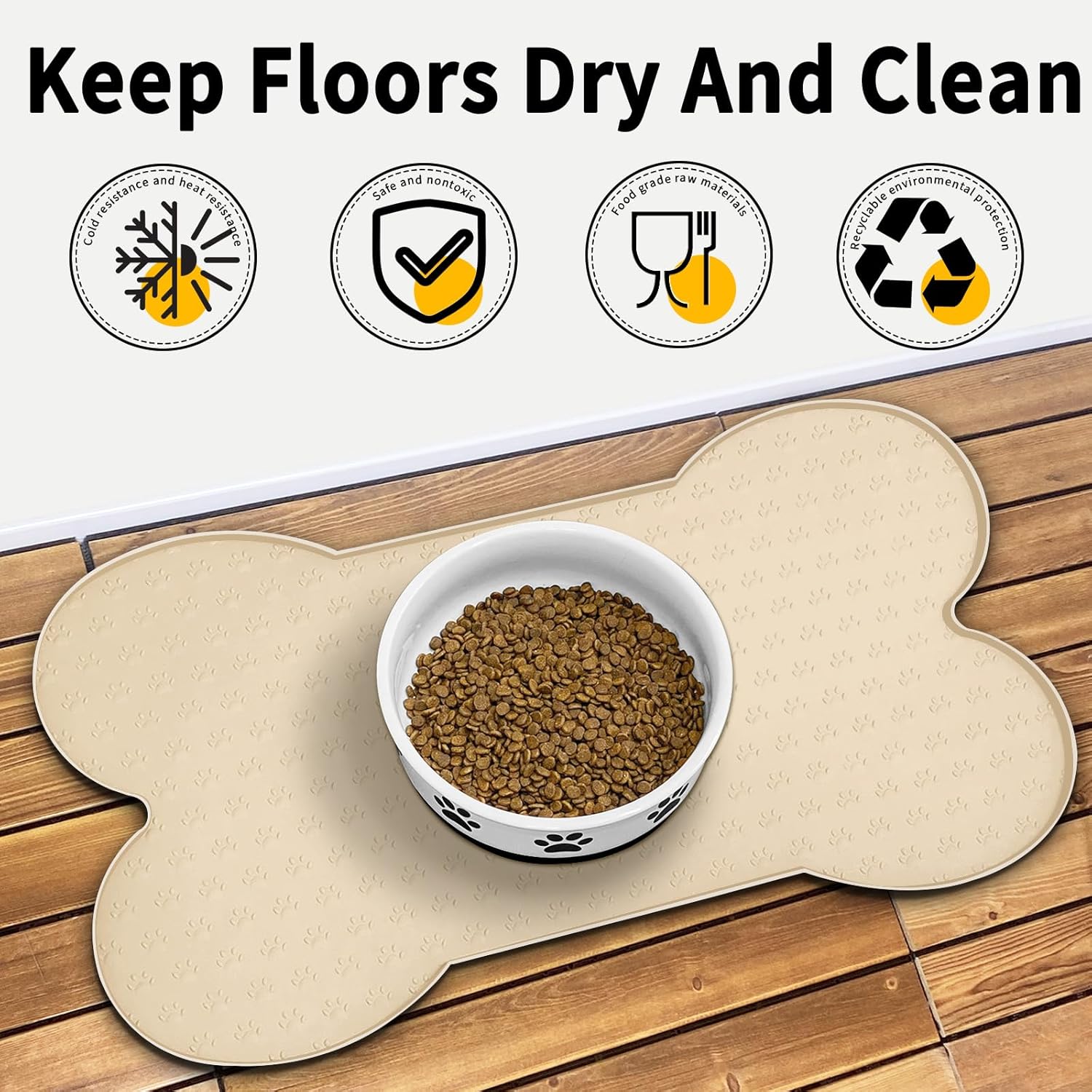 - Raised Edge - The high edge of this feeder mat keeps food and water within the tray and prevents spillage onto a clean floor. Keep your living space tidy and clean, say goodbye to messy floors, you just need to clean the dog bowl mat regularly.