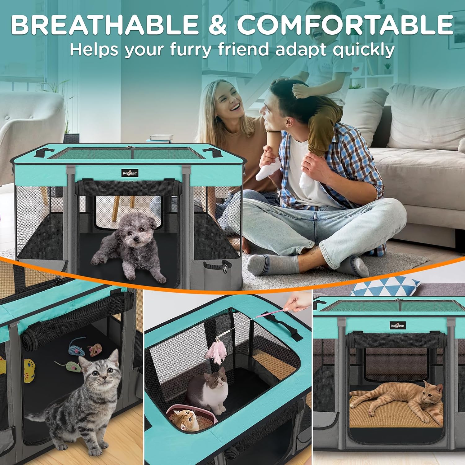 - Safety & Durability: Kitten playpen is made of high-quality 600D Oxford cloth, which is wear-resistant, soft to the touch, and odorless. We have reinforced the joints and corners of the dog playpen to ensure the safety of your pet. (The portable pet playpen is lightweight, and you can place heavy objects inside the pet playpen to increase stability, but it is not suitable for use with aggressive pets)