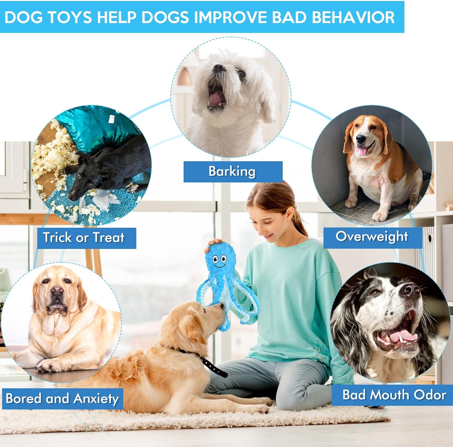 Squeaky Dog Toys Octopus Stuffed Crinkle Toy, Puppy Chew Toys for Teething, Durable Tug of War Interactive Plush Dog Toys for Puppies Small, Medium, and Large Dogs
