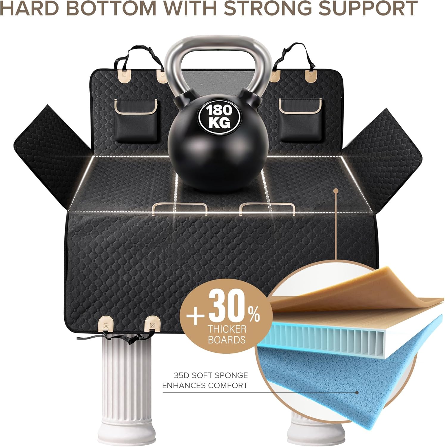 - HARD BOTTOM CAR SEAT COVER FOR DOGS GET 99.9% SPACE UTILIZATION - Hard bottom creating nearly 40% extra flat space to enhance your pickup truck's backseat area. Dog hammock for truck features three extra sturdy boards, allowing dog to move freely and stretch out comfortably at all rear spaces during rides. With four side flaps acting as safeguards, your pet can stay secure when sudden stops, ensuring a unworried journey for both you and furry friends