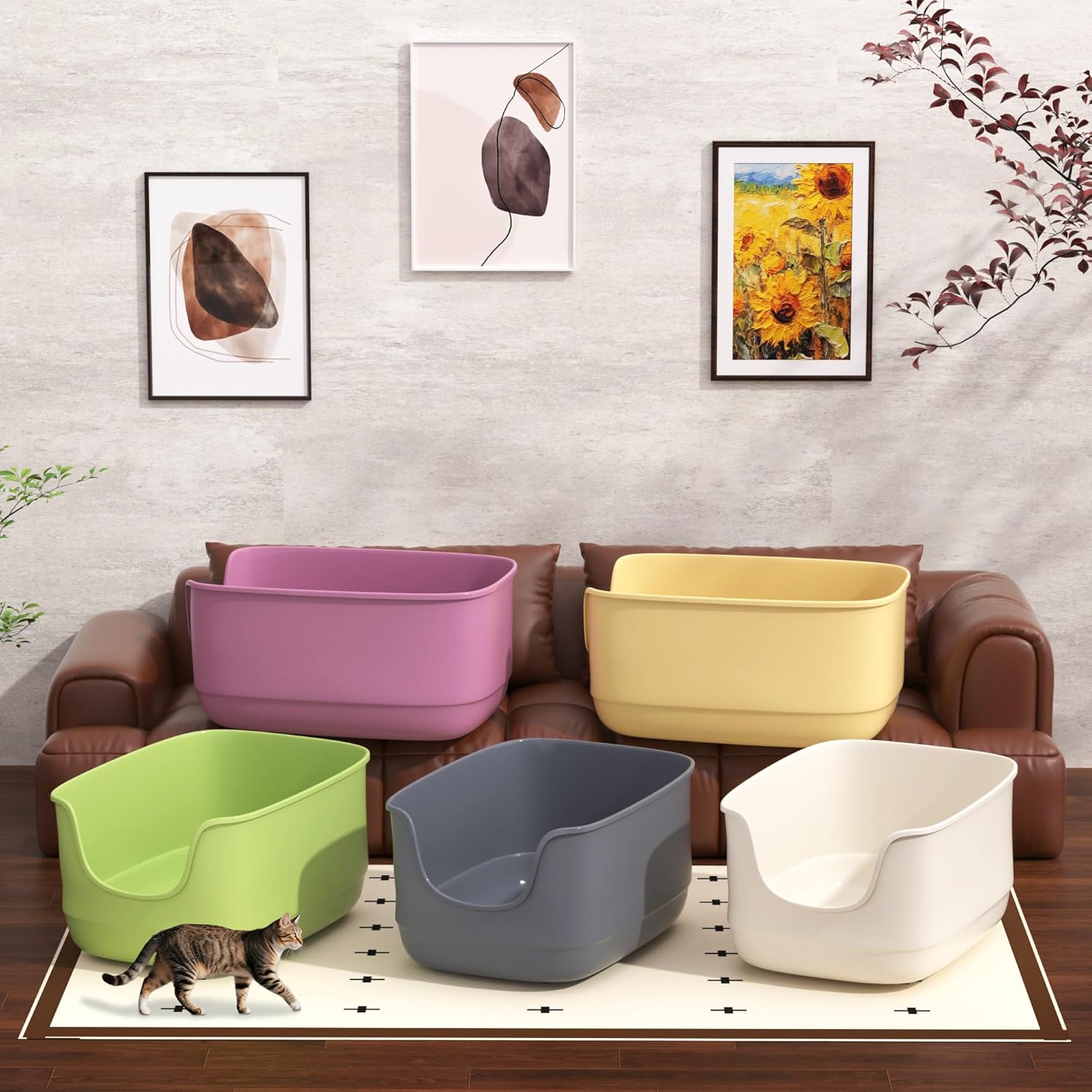 - Extra High Side Design: Designed for naughty cats, the height of the wall of the high side litter box is twice as high as that of an ordinary litter box, the high wall can block the cat litter inside the litter box, no need to worry about the cat litter scattered everywhere.