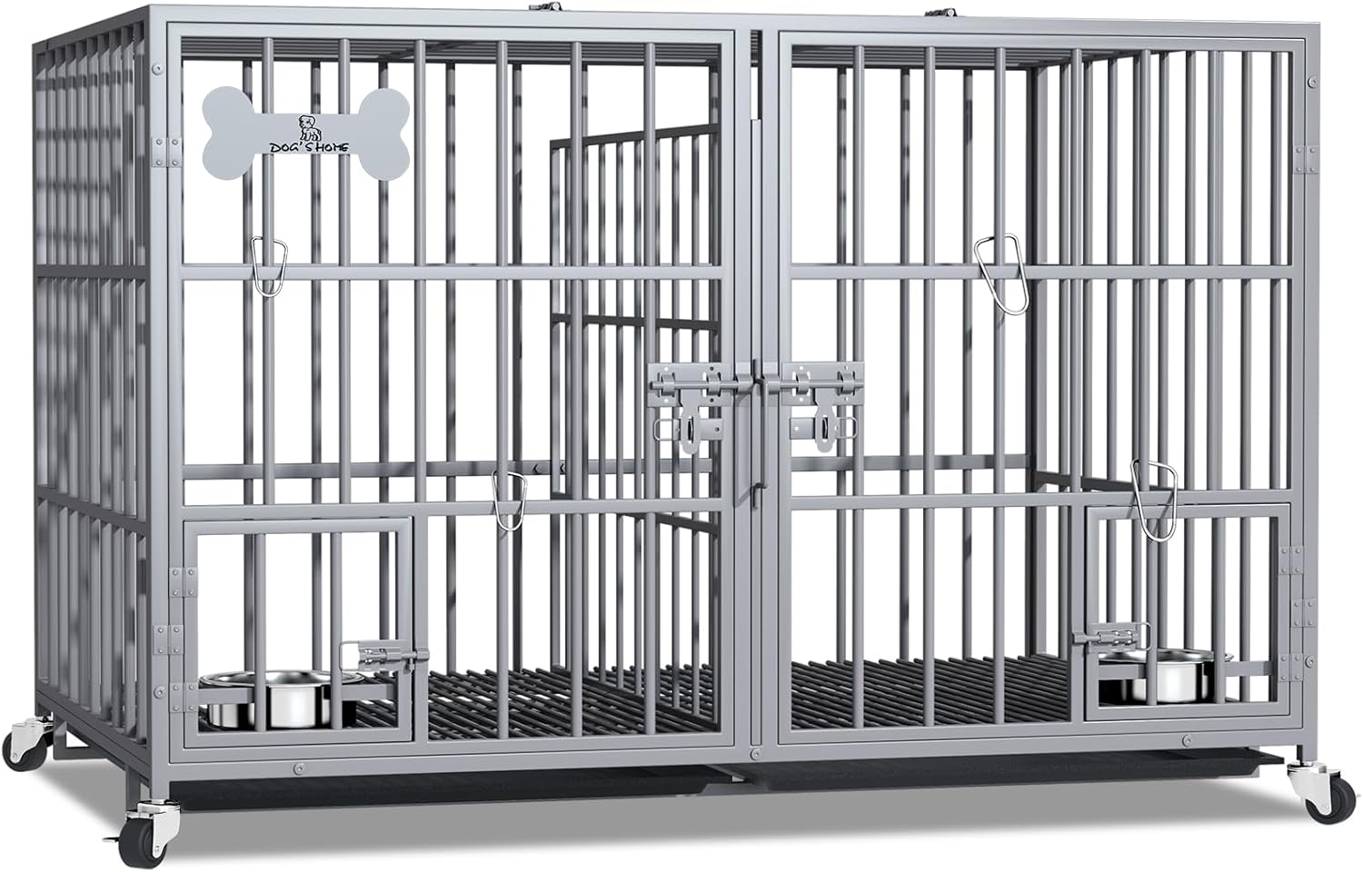 - ăEasy Access & FeedingăThe dog crate has double doors and a reversible top for easy access almost anywhere. The top is open for easy access. The kennel is additionally designed with 2 small feeding doors with locks. These doors allow quick and easy access to the stainless steel dog bowl, swing bowl, without having to open the front door for easy feeding. The dog kennel double door design is not only easy to get in and out of the kennel, but also good for you to interact with and feed your dog.