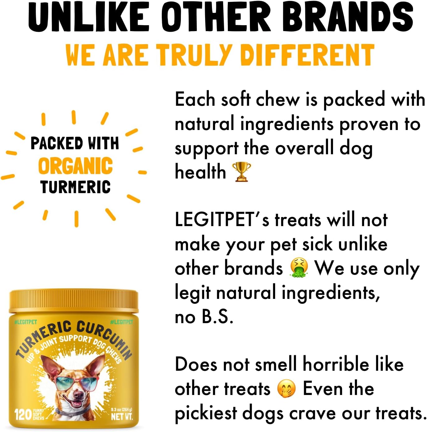 - NATURAL & ORGANIC INGREDIENTS: Our chews are made from 100% organic turmeric and free from artificial additives, fillers, and preservatives. This ensures that your dog receives a safe, natural supplement.