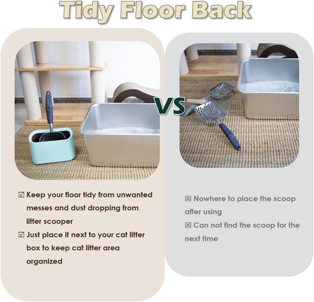 - SCOOP CADDY & LITTER CONTAINER - Cat litter scooper comes equipped with a convenient stand, which is a must-have for maintaining a clean and healthy home environment. The double-layer design of the scooper caddy itself can also be used as a trash can