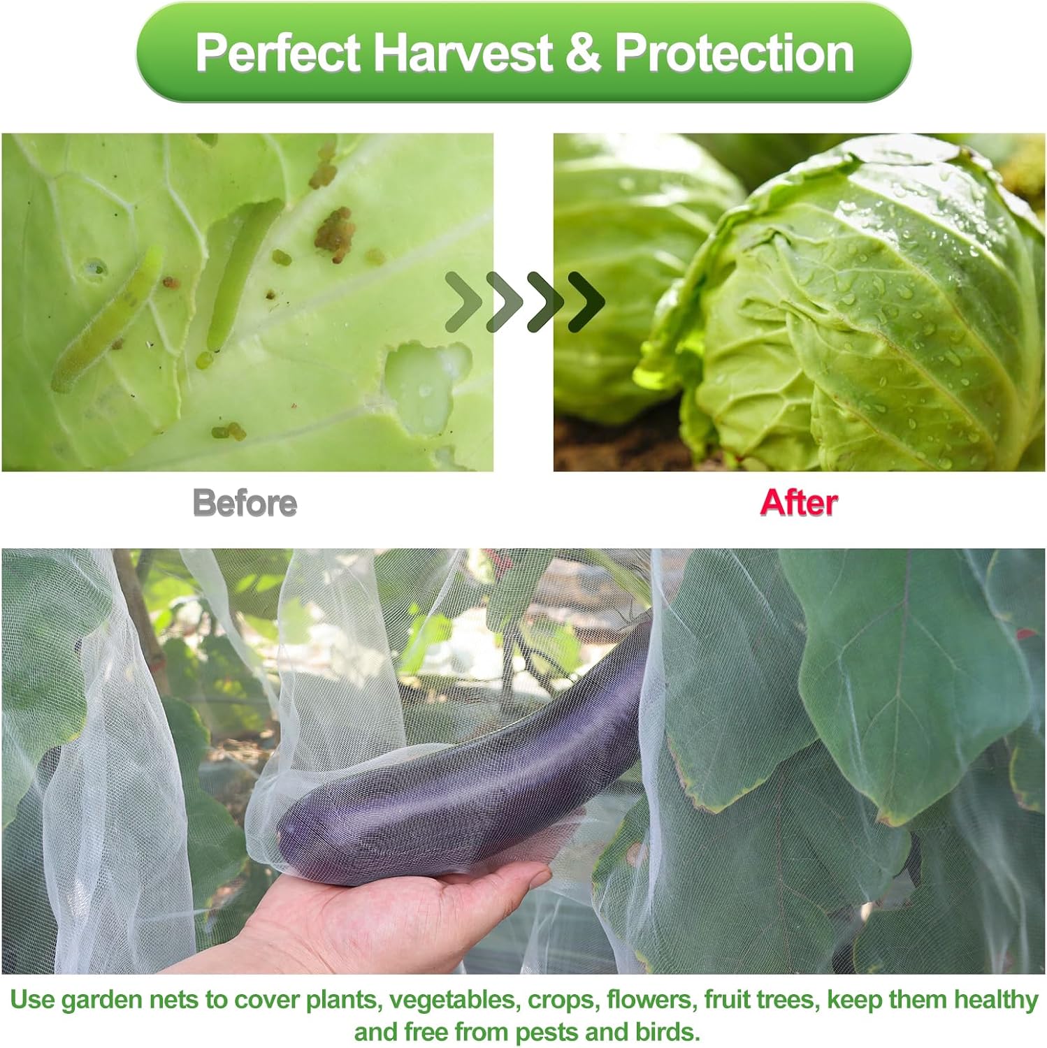• [ Remarkable Garden Plant Protection ] Through a net with a tiny diameter (0.8*1 mm diameter), prevent pests, insects, birds, poultry and other alien creatures from invading your plants, and avoid the destruction of plant leaves, flowers or fruits.