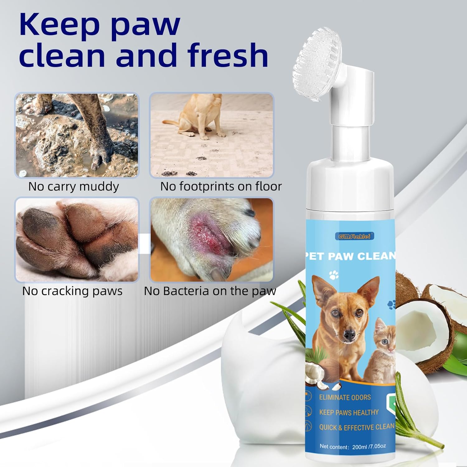 - 🐾 NO-RINSE & WATERLESS PET PAW CLEANER - Our no-rinse foaming cleanser allows you to clean paws quickly and efficiently.Whether it's returning from an outdoor activity or everyday dirt, this pet paw cleaner removes dirt and odors with ease.The foaming formula and soft silicone bristles ensure a deep clean to keep your furry friend healthy and clean.The paw cleaner is designed to help you clean your dog's paws quickly and efficiently.This pet paw cleaner is designed to help you clean your dog's paws quickly and efficiently.