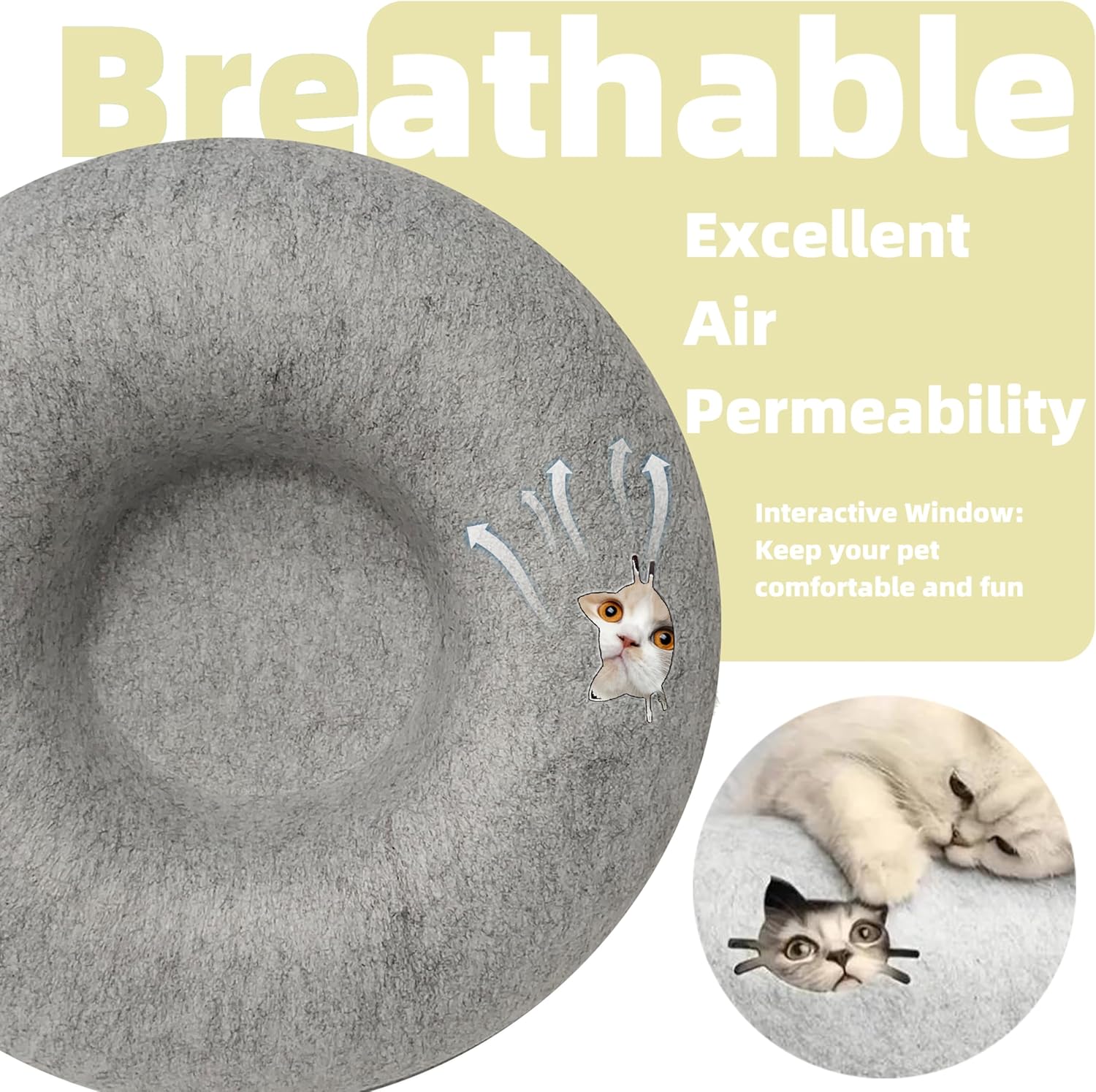 - 🐱Four Seasons Cat Nest: Donut felt cat bed, Unlike other litters or catteries that can only serve at most one pet, they can either hide inside the den for comfort and private time or rest on top.This Cat Bed Cave can be a wonderful gift for cat owners. It will easily attract cats and be loved by them.