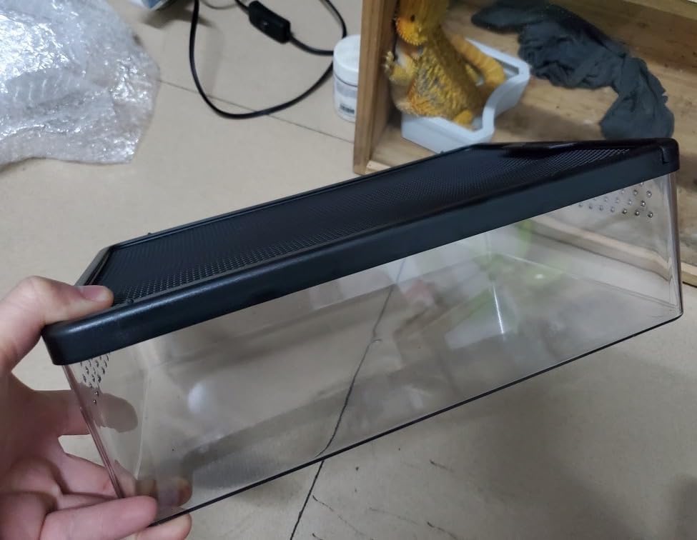 - size --- this reptile breeding box measure about 32x22x10cm(12.6x8.6x3.9inch), Please note that the height of the reptile container is only 10cm/3.9inch, and there are ventilation holes at the top of the box about 0.4 cm, so this reptile box is not suitable for large reptiles and small insects.