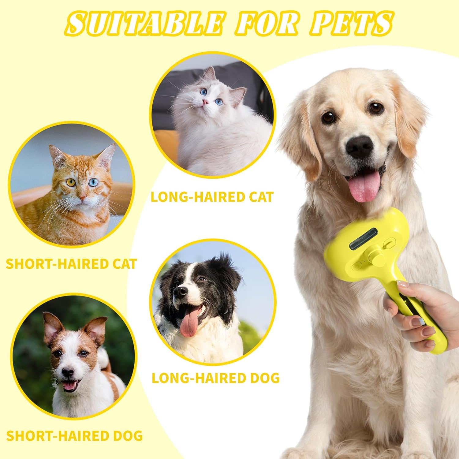 QOQ Self-Cleaning Spray Cat Brush for Shedding, Removes Static Flying Hair, and Works Wonders for Both Long and Short-Haired Pets 2 In 1 Cleaning Brush for Cats And Dogs Grooming (Yellow)