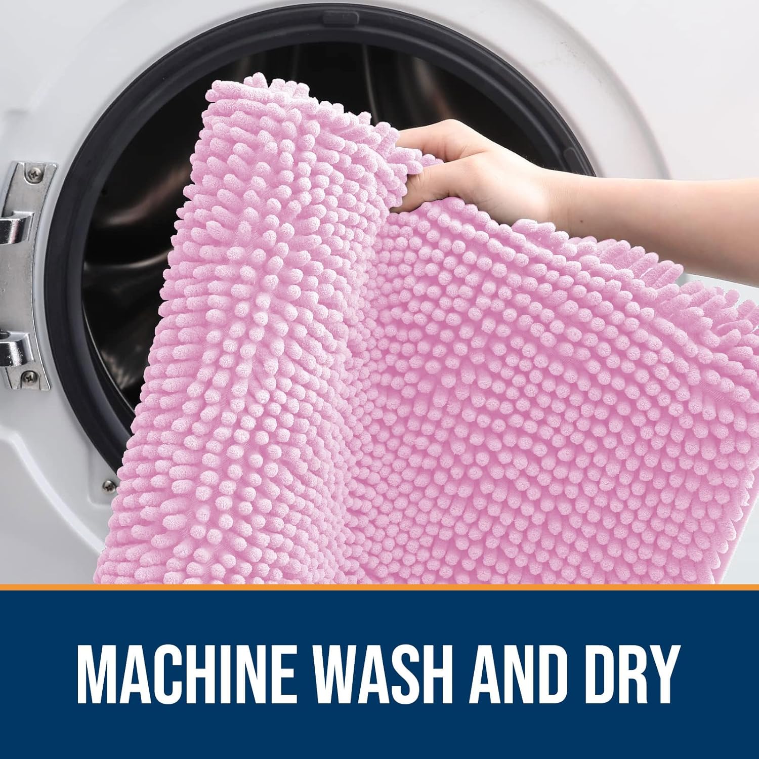 OLANLY Dog Door Mat for Muddy Paws 36x24, Absorbs Moisture and Dirt, Absorbent Non-Slip Washable Doormat, Quick Dry Chenille Mud Mat for Dogs, Entry Indoor Entryway Carpet for Inside Floor, Pink