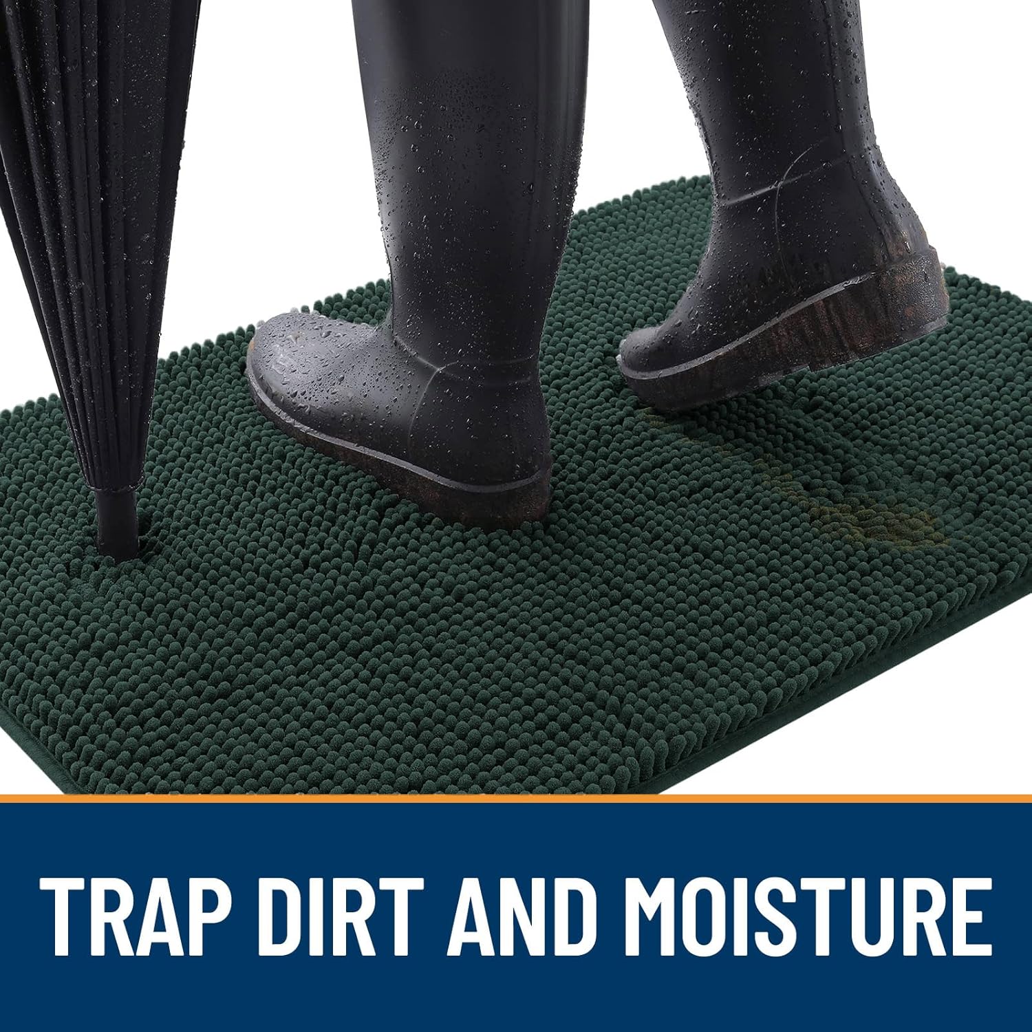 OLANLY Dog Door Mat for Muddy Paws 48x30, Absorbs Moisture and Dirt, Absorbent Non-Slip Washable Doormat, Quick Dry Chenille Mud Mat, Entry Indoor Entryway Carpet for Inside Floor, Blackish Green