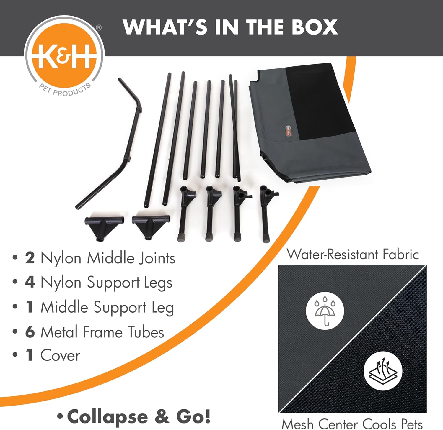 K&H Pet Products Outdoor Elevated Dog Cot, Breathable Cooling Elevated Cot Hammock Pet Bed for XL Dogs, Washable Mesh Cover, Raised Metal Frame, Collapsible, Portable - Jumbo 56 X 38in Charcoal