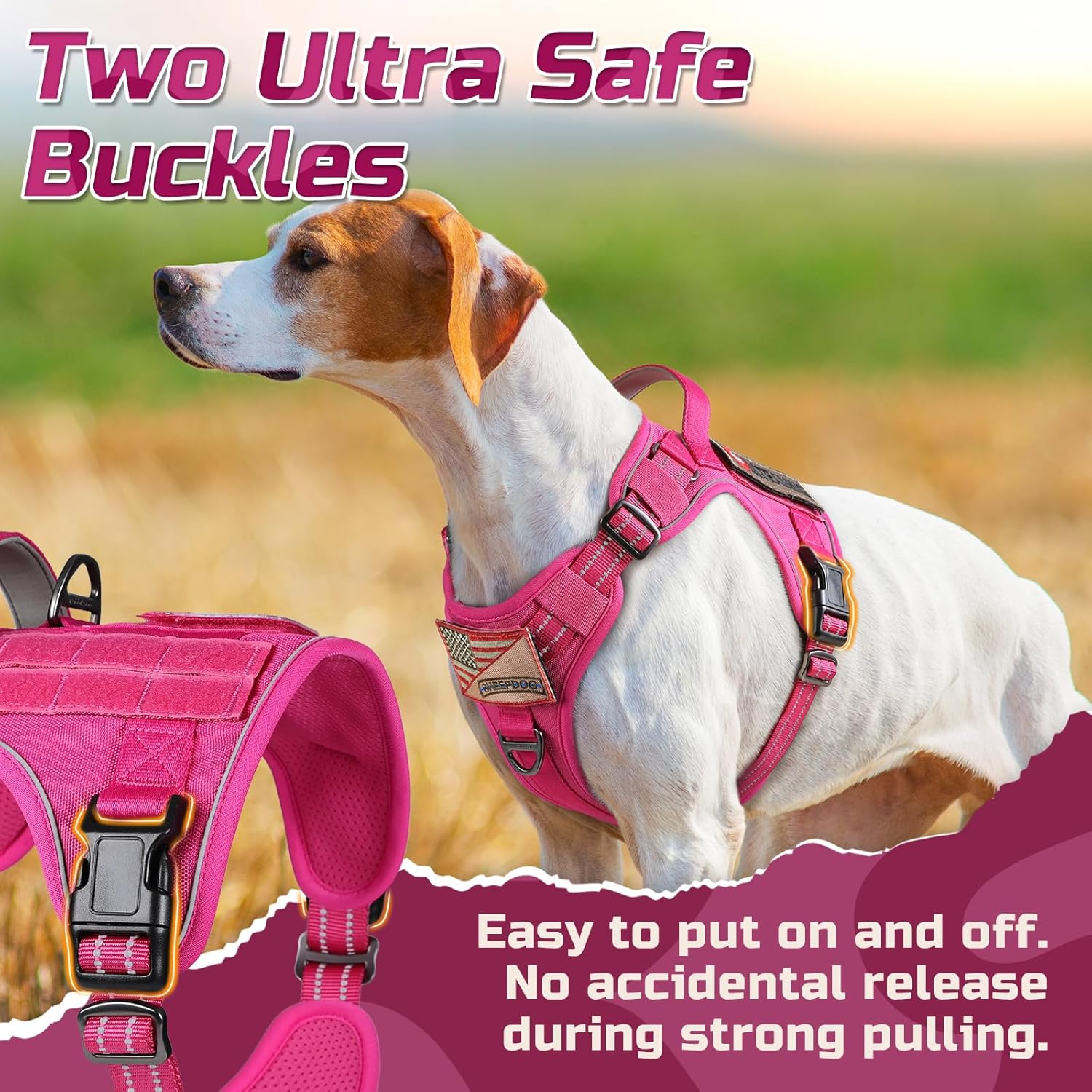 rabbitgoo Tactical Dog Harness Medium Sized Dog, No Pull Military Service Vest with Handle & Molle, Easy Control for Training Walking, Adjustable Reflective Straps, Rose Red, M