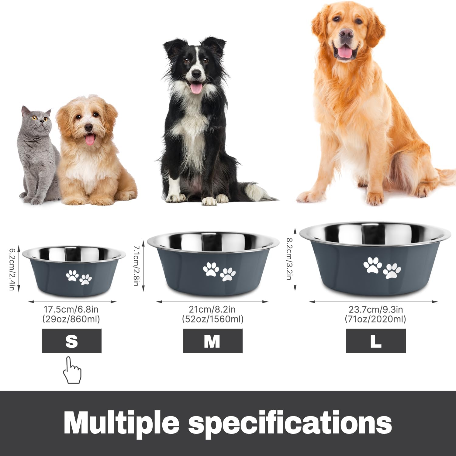 - πππ-ππππ: Stainless Steel Pet Bowl with Silicone chassis - Keep Mealtime Mess-free and quietοΌThe cleverly designed foot mat prevents the bowl from scratching the floor, making it suitable for use on various types of flooring.
