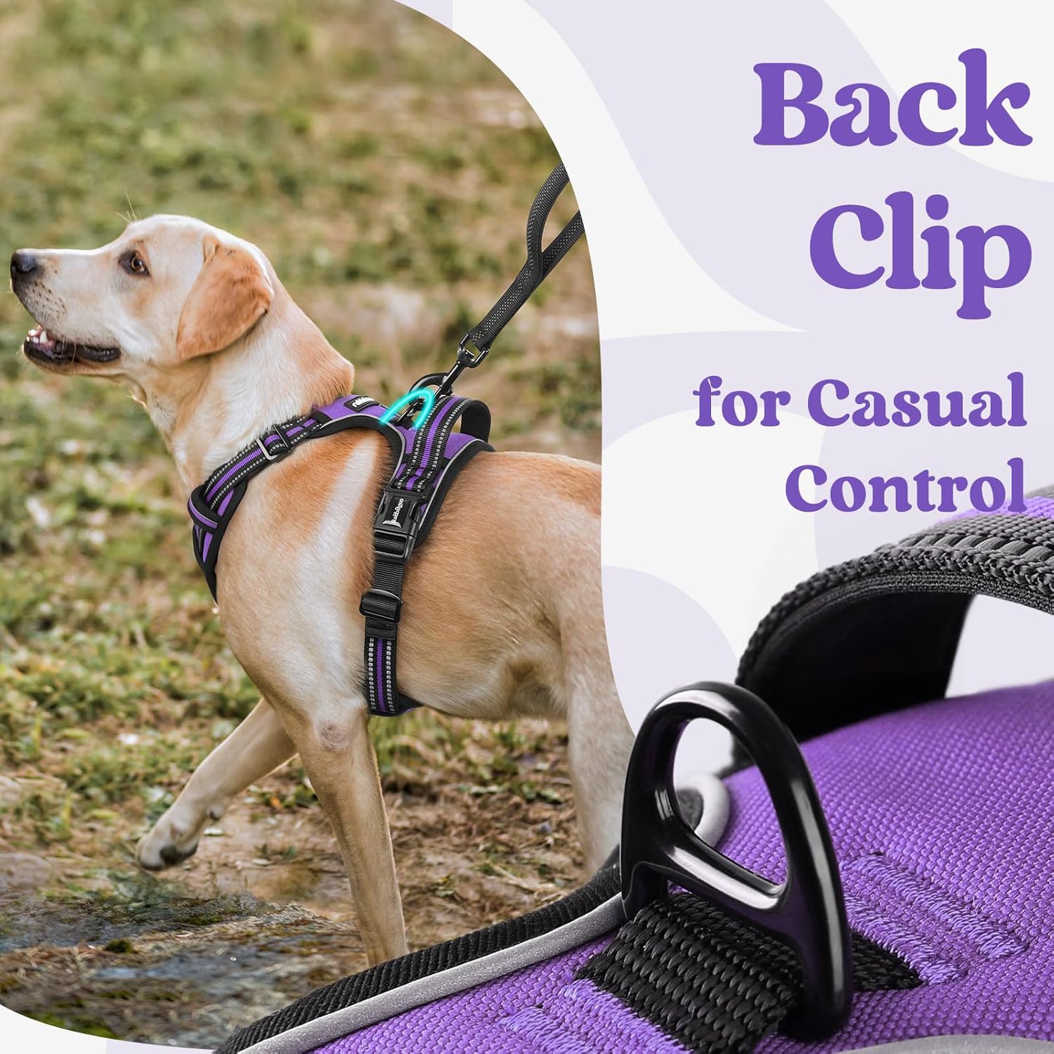 rabbitgoo Dog Harness for Large, No Pull Pet Harness with 3 Buckles, Adjustable Soft Padded Vest with Control Handle, Walking Reflective Pet Vest for Extra Large Dogs, Purple, XL