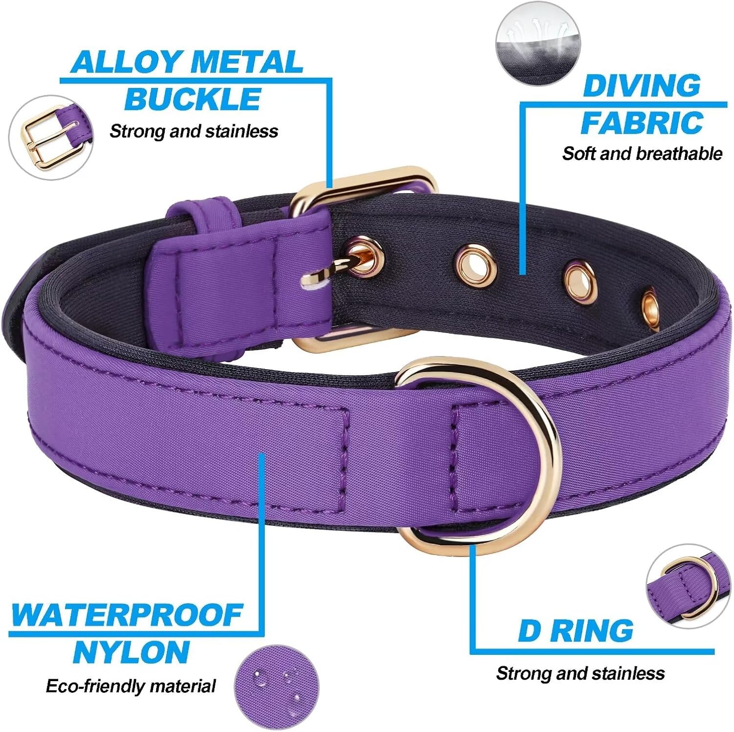 Didog Soft Padded Dog Collars for Medium Dogs, Lightweight and Breathable Purple Dog Collar with Metal Buckle, Purple, L