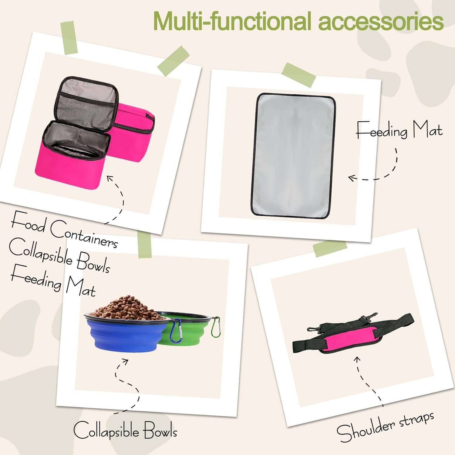 Dog Travel Bag,Weekend Pet Travel Bag Set for Dog and Cat,Airline Approved Tote Multi-Function Dog Bags for Traveling,Include 2 Collapsible Bowls,2 Food Storage Containers,1 Feeding Mat,Red