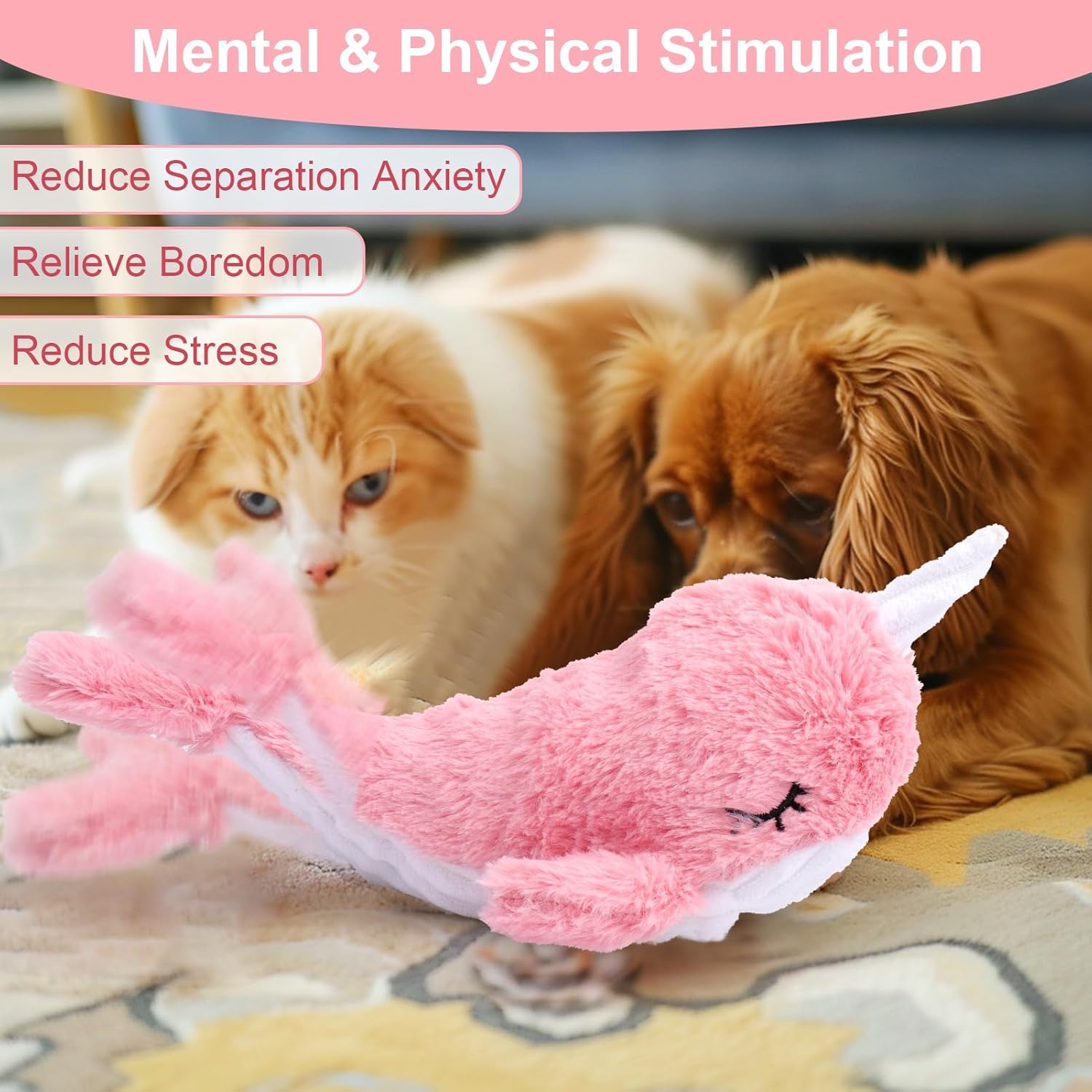 Mity rain 2 in 1 Interactive Dog Toys, Fish Dog Toy to Keep Them Busy, Plush Squeaky Dog Toys, Rechargeable Wiggly Pink Pet Toys for Small Medium Large Dogs, Moving Dog Toys for Indoor&Outdoor
