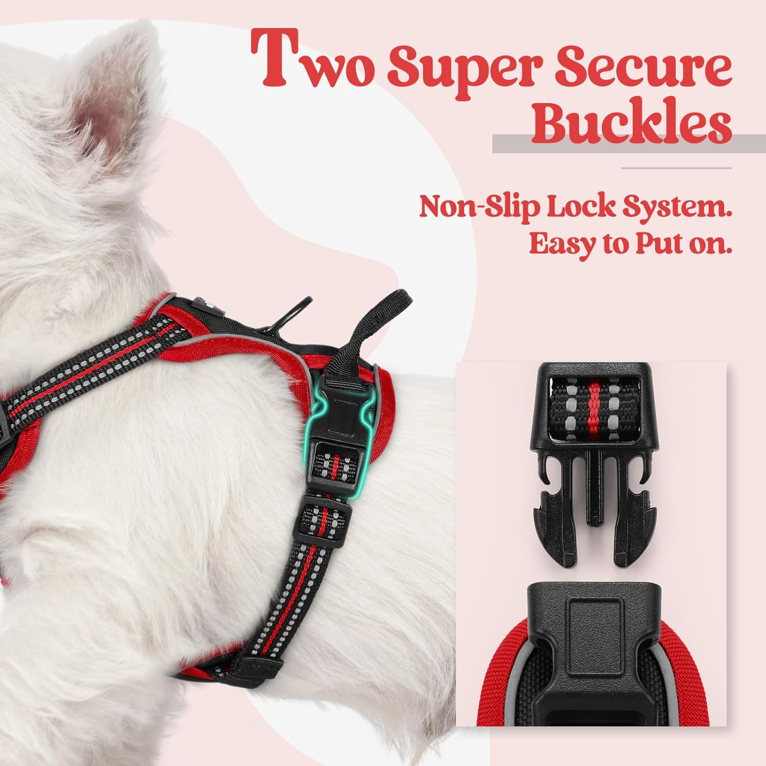 - Easy to Use - This hassle-free overhead harness is easy to put on and take off with its 2 fast-release buckles. Slide the harness over your dog's head, buckle it up, adjust the straps, and here you go! Grab the top handle for additional control. Lightweight and easy to clean