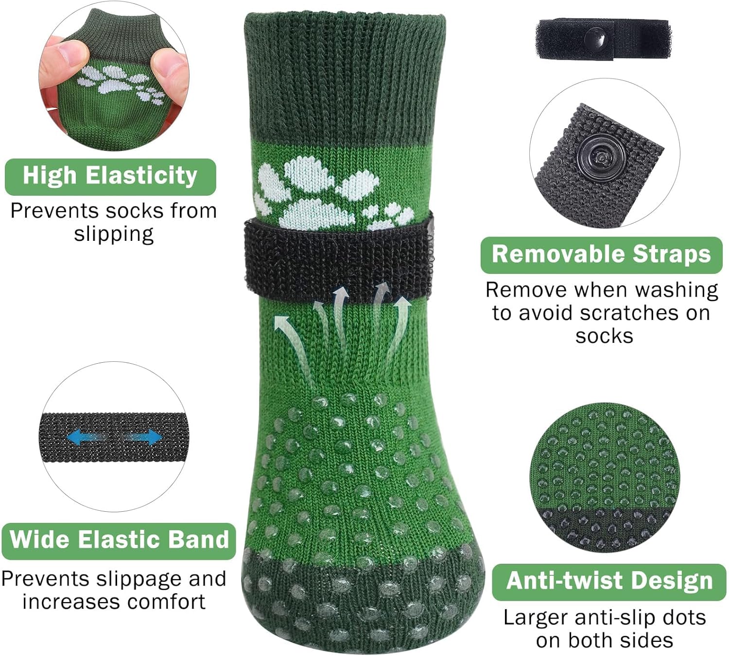 - MULTIFUNCTIONAL MULTI-SITUATION APPLICATION: This dog socks for hardwood floors can provide protection for your dog's paws from hot pavement, heat and other potential hazards in the summer. Wearing our socks also prevents dogs from licking and irritating wounds, further aiding in the healing of foot wounds.