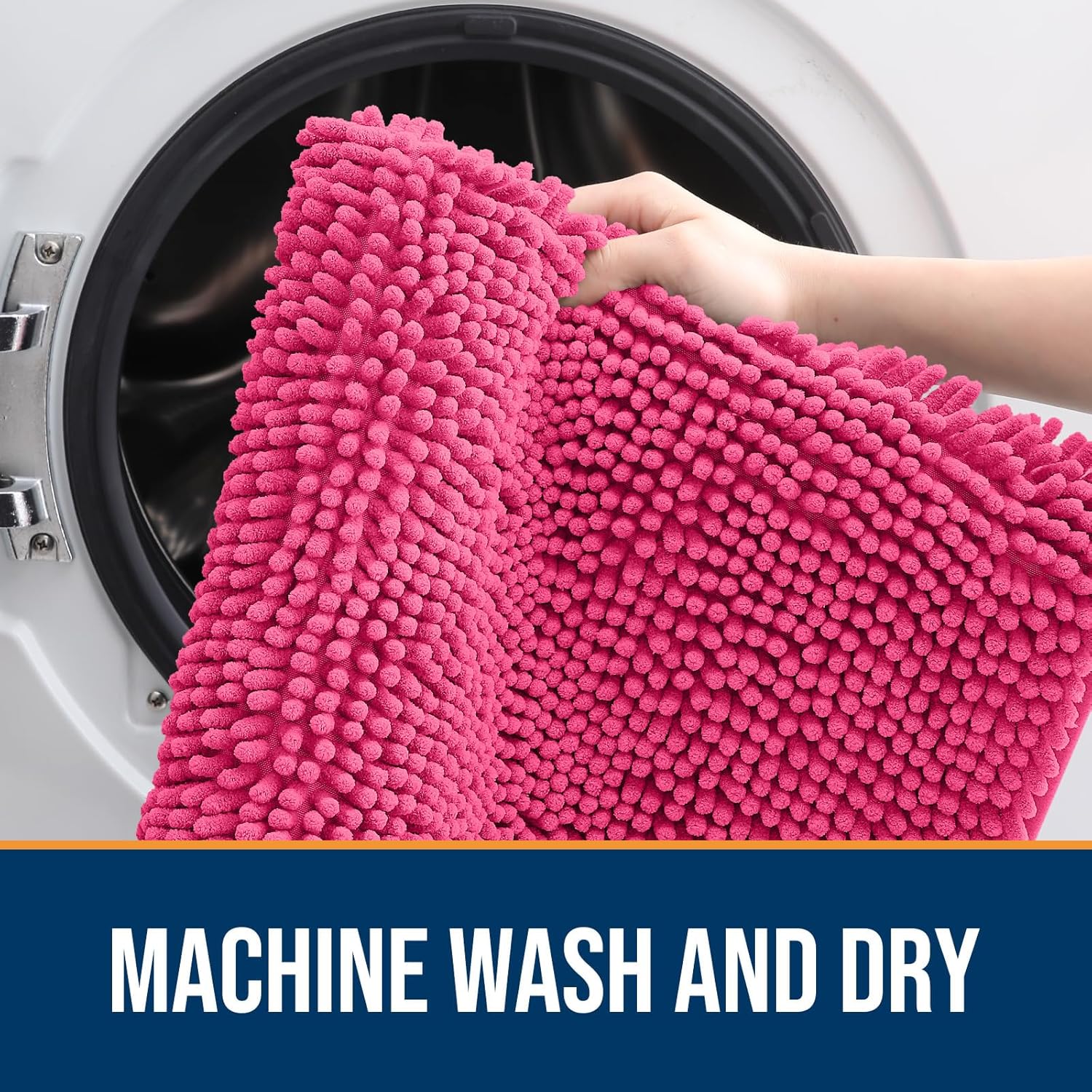 OLANLY Dog Door Mat for Muddy Paws 47x32, Absorbs Moisture and Dirt, Absorbent Non-Slip Washable Doormat, Quick Dry Chenille Mud Mat for Dogs, Entry Indoor Entryway Carpet for Inside Floor, Hot Pink