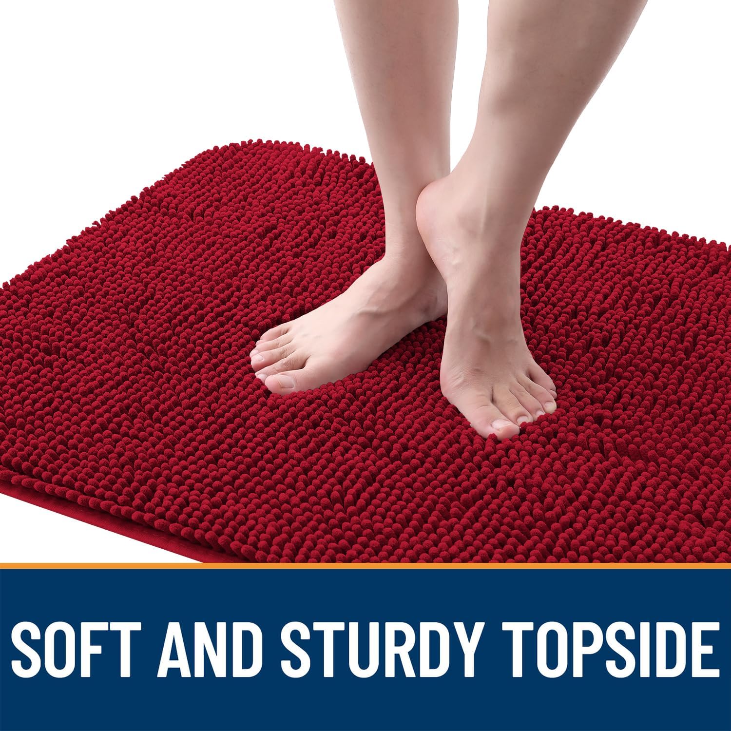 OLANLY Dog Door Mat for Muddy Paws 48x30, Absorbs Moisture and Dirt, Absorbent Non-Slip Washable Doormat, Quick Dry Chenille Mud Mat for Dogs, Entry Indoor Entryway Carpet for Inside Floor, Red