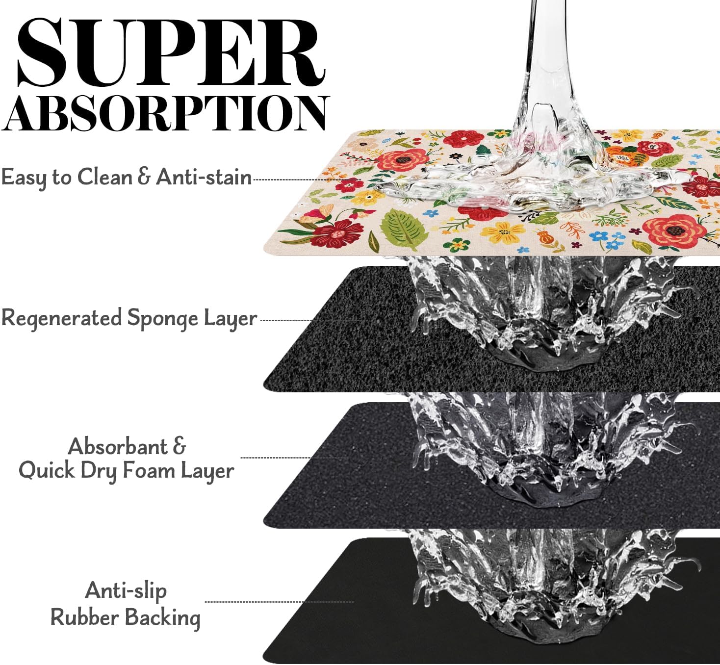 Dog Food Mats for Floors, Absorbent Quick Dry Pet Cat Food Mat, Dog Bowl Mats for Food and Water Dispenser Mat, Eco-Friendly Dog Accessories Pet Supplies 12""x20"", Floral White