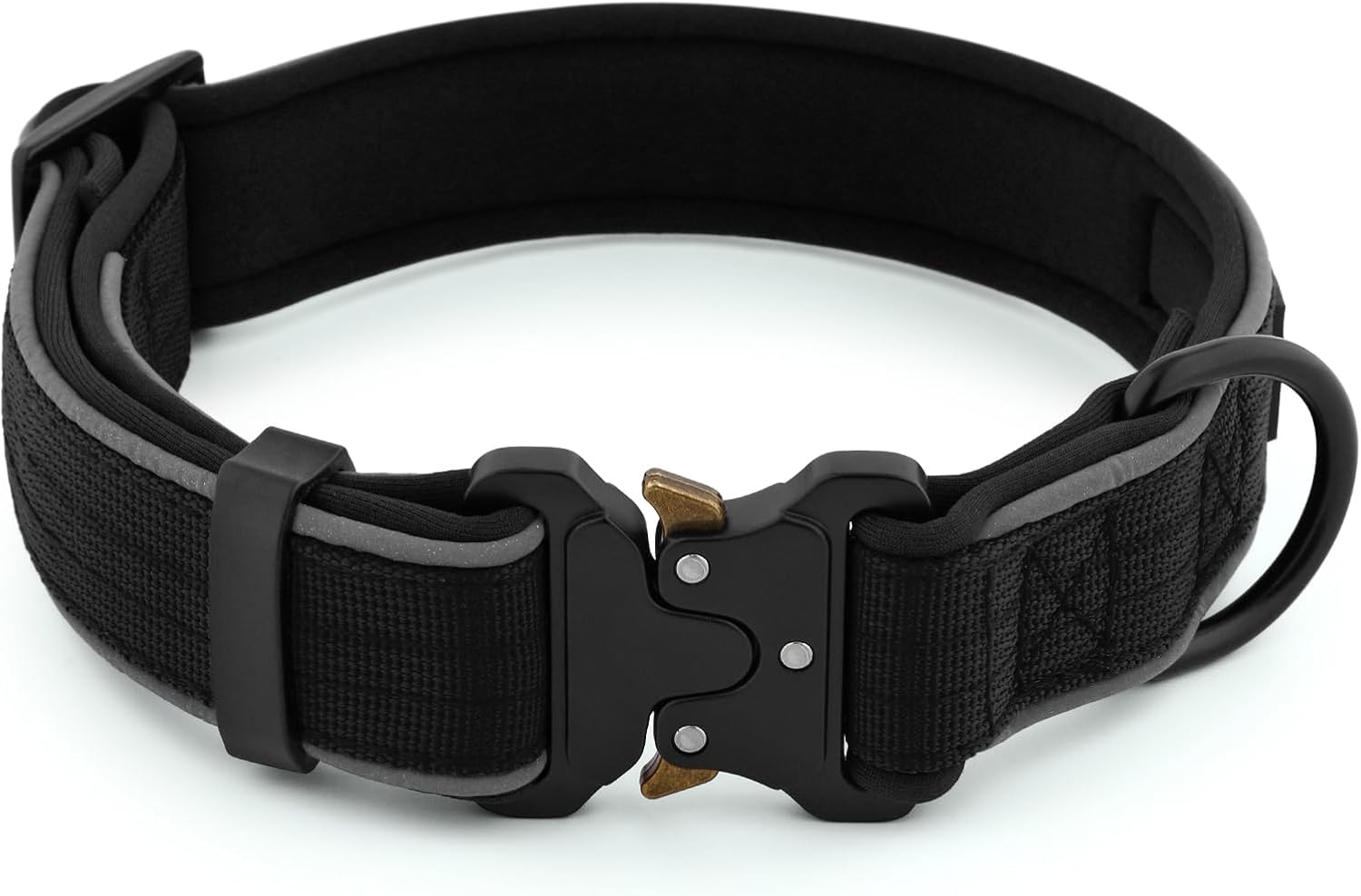 Plutus Pet Tactical Dog Collar, Reflective, Adjustable Heavy Duty Dog Collar, Soft Padded and Comfortable, for Small Medium and Large Dogs (Black, M)