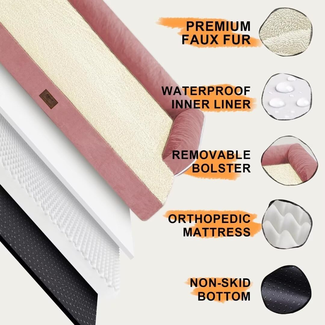 Large Dog Bed Orthopedic Washable - Couch Sofa - XXL Large Big Dogs - Beds Bolster Pet - Memory Foam - Waterproof with Removable Cover - Pink Dog Bed
