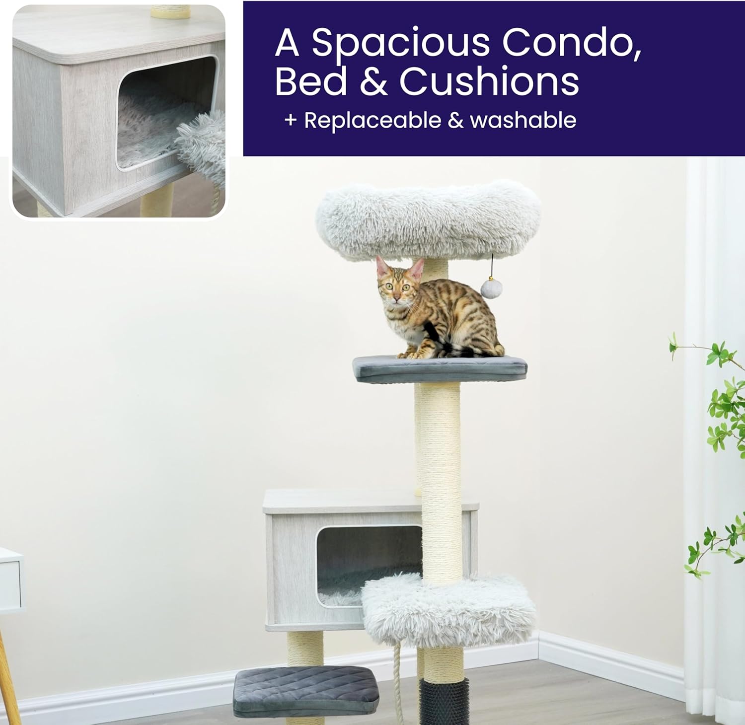 - Replaceable natural sisal scratching posts and beds.