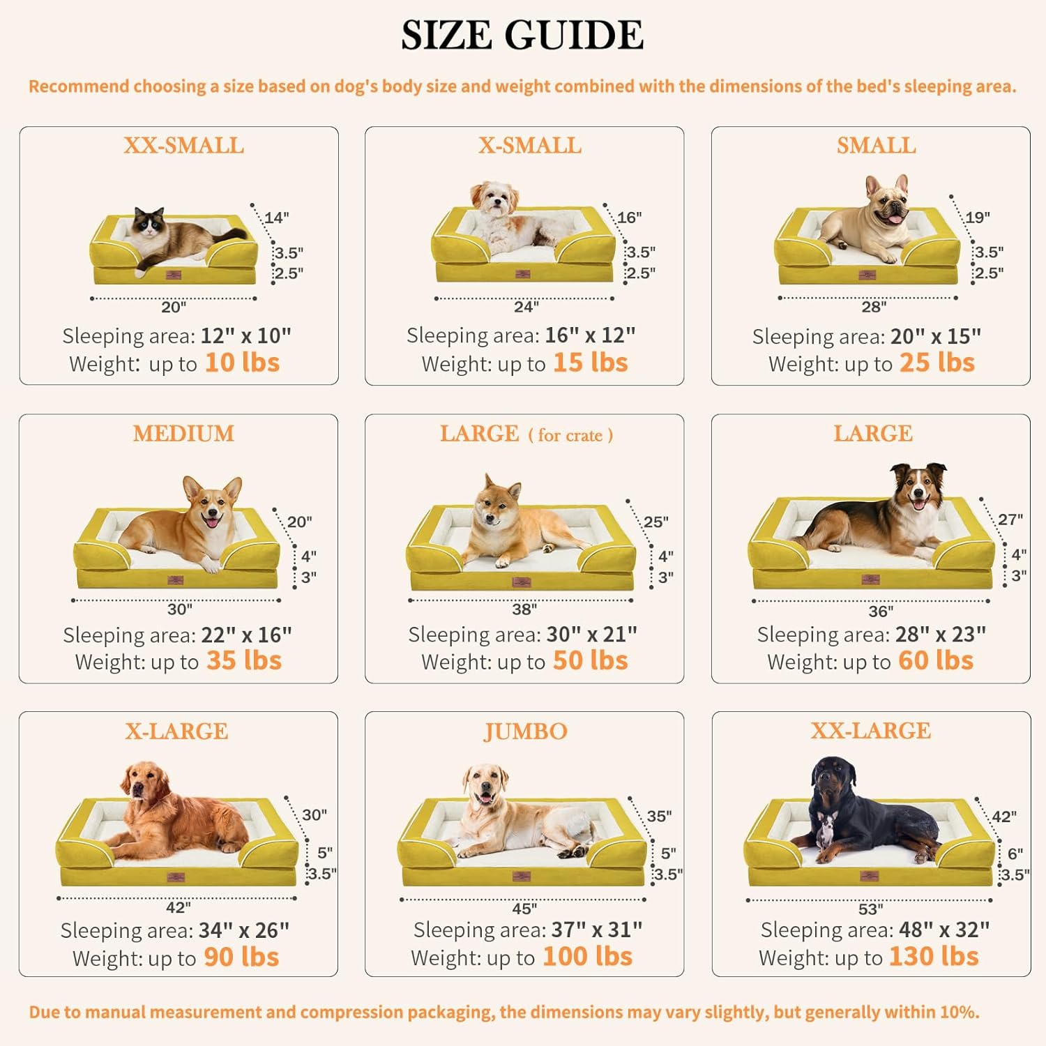 Comfort Expression XXL Dog Bed Orthopedic Foam, Waterproof Dog Beds for Oversized Dogs, Washable Dogs Sofa Bed with Removable Cover & Non-Slip Bottom(XX-Large,Spicy Mustard)