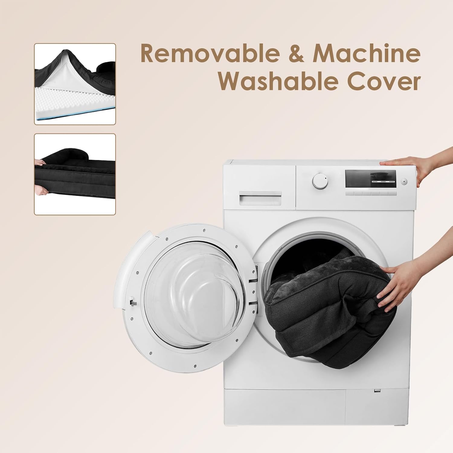 - MACHINE WASH and CARE INSTRUCTION: Our washable dog bed with removable cover has zipper closure and can be easily cleaned. Just get the foam off and it can be machine washed directly with the sides. Please note that the inner foam is not washable. After receiving it, leave it for 24-48h for rebound.