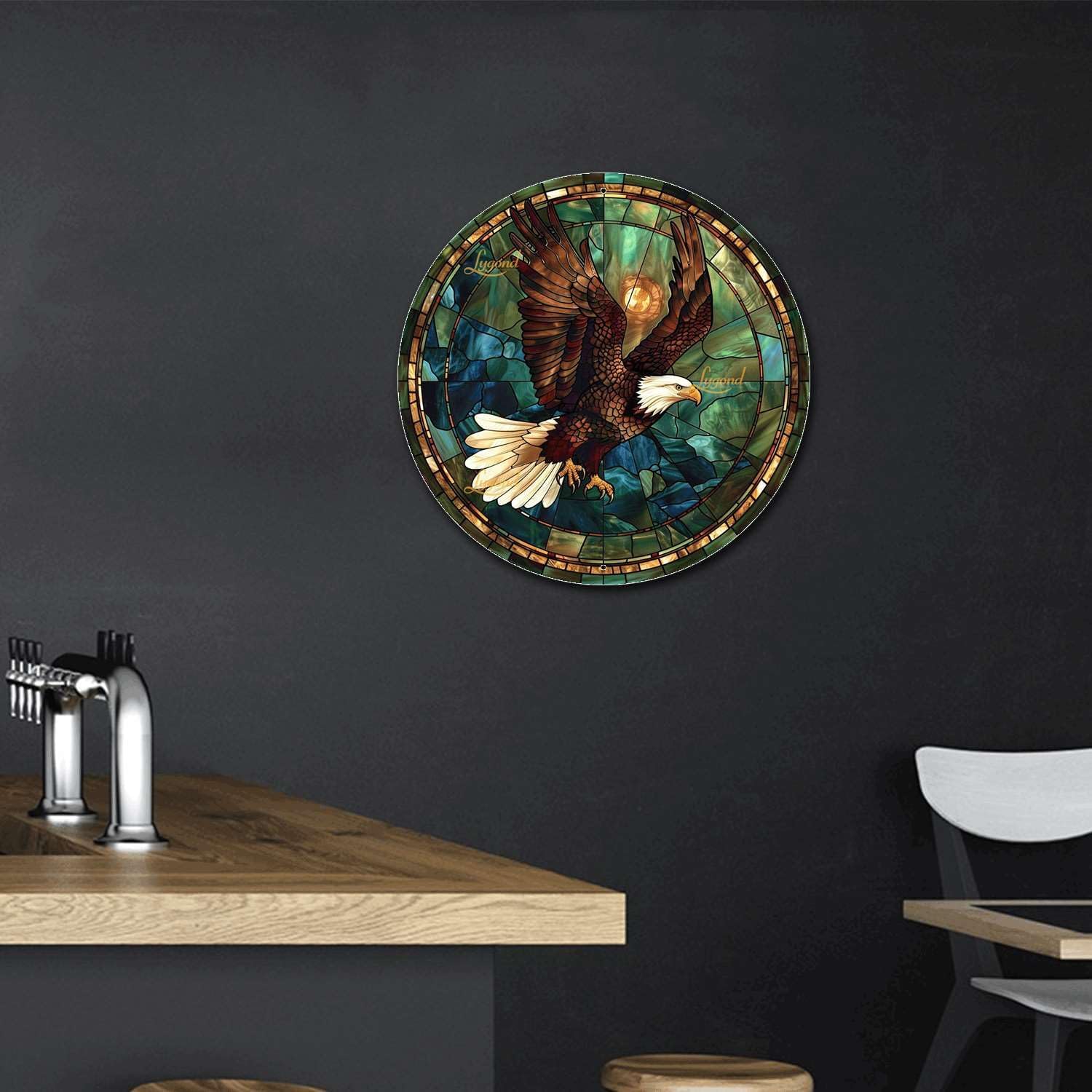 Lygond Metal Sign Tin Sign Circular Stained Glass American Bald Eagle Bathroom Signs for Home for Yard 8×8 Inches